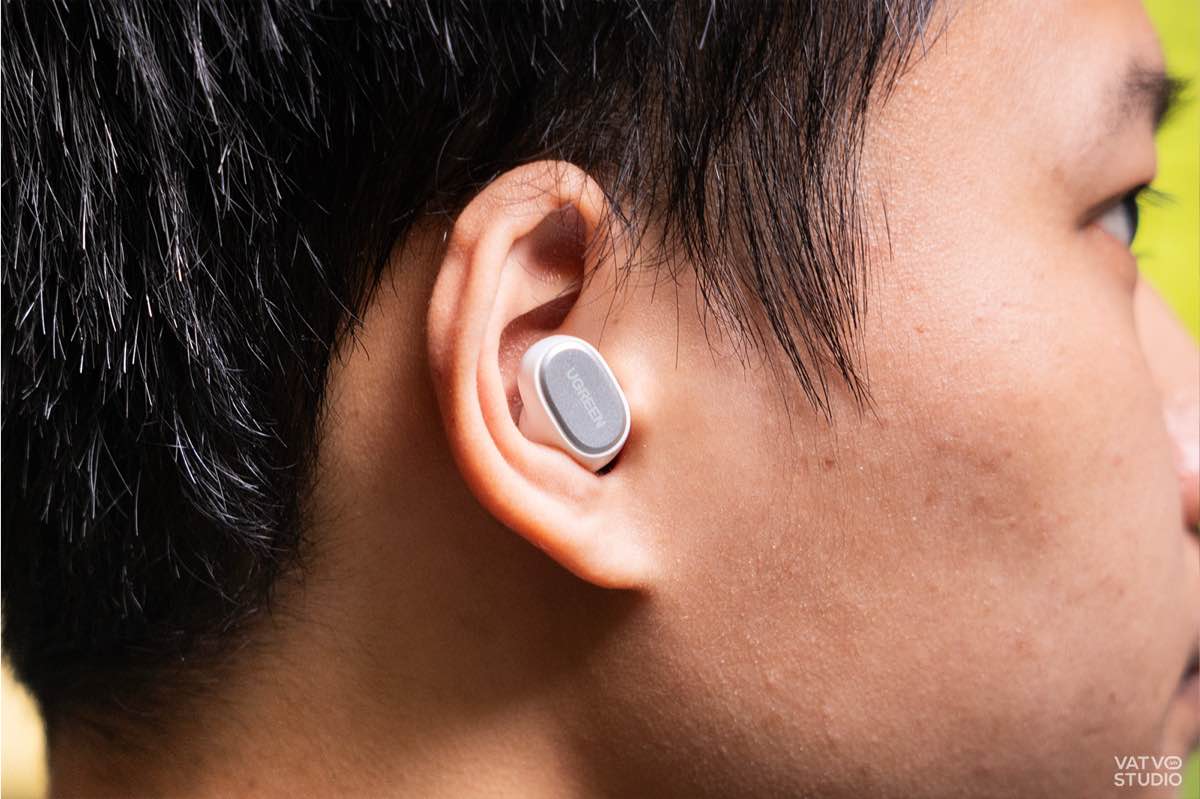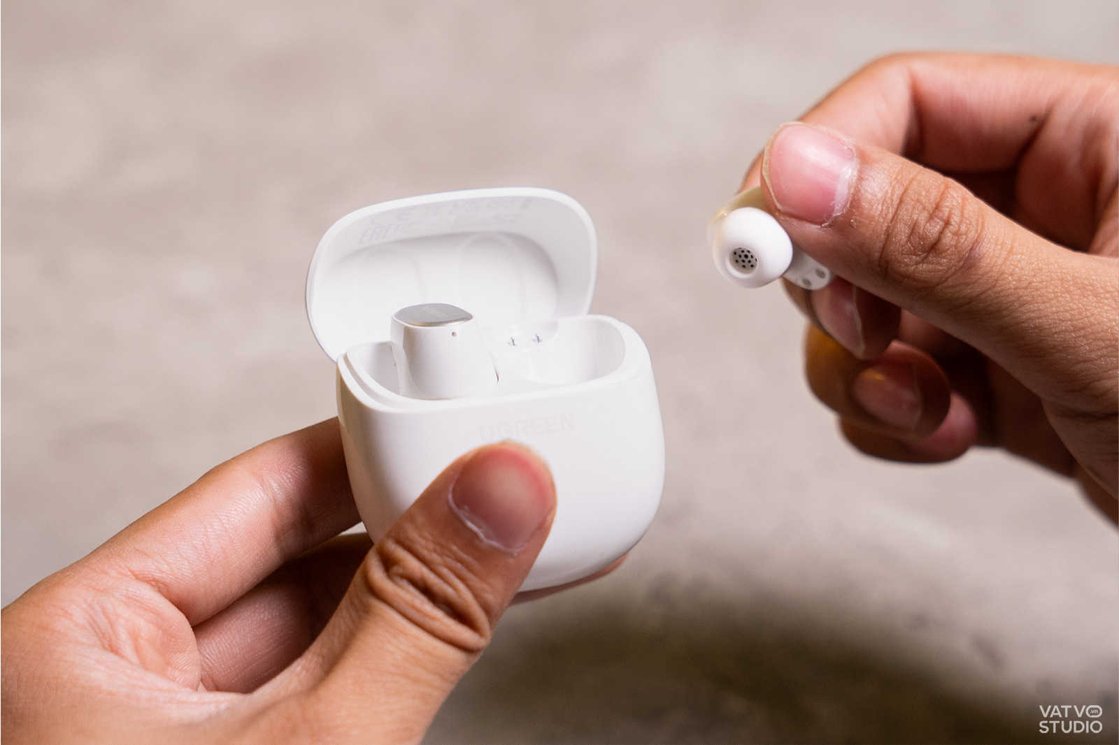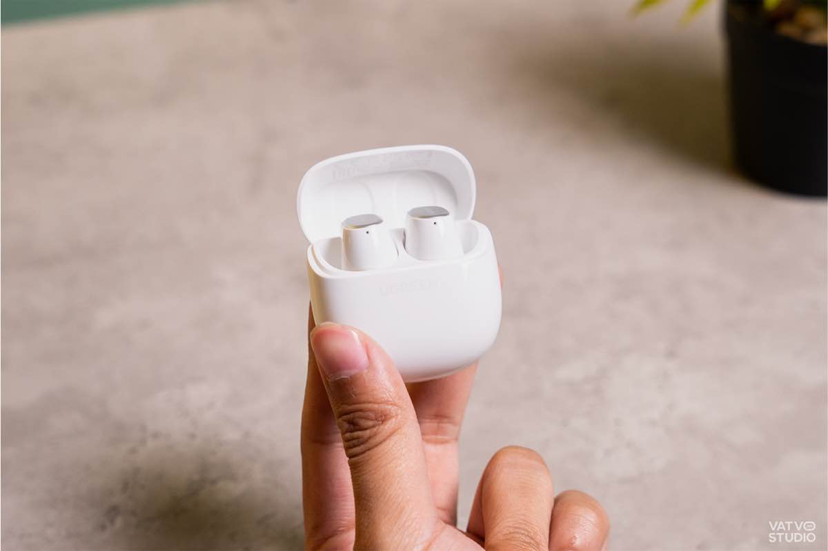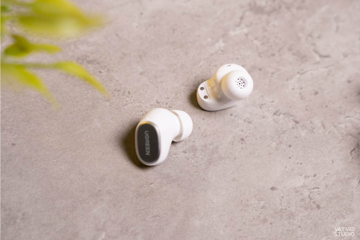Với những ai đang tìm kiếm một chiếc tai nghe siêu nhỏ gọn để đeo đi ngủ hoặc nằm nghiêng xem phim mà không bị cấn, UGREEN Dots là cái tên sáng giá thay thế cho các dòng Baseus cũ. Sản phẩm gây ấn tượng với thiết kế “viên sỏi” bo tròn, bản lề đóng mở rất êm và khít. Phần tai nghe có khối lượng rất nhẹ, kết hợp với ống dẫn âm nghiêng 108 độ giúp thiết bị bám chắc mà vẫn mang lại cảm giác êm ái, phù hợp với cả các bạn nữ có khuôn tai nhỏ.
