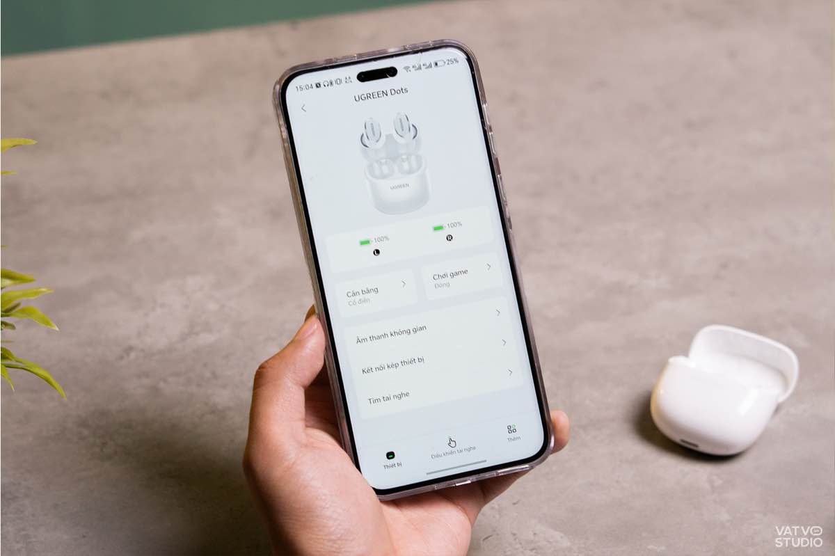 Khác với các dòng tai nghe siêu nhỏ trôi nổi thường có chất âm mỏng, UGREEN Dots nhấn mạnh vào dải trầm và dải cao, tạo cảm giác phấn khích khi nghe nhạc sôi động và có hỗ trợ cả tính năng giả lập âm thanh vòm (Spatial Sound) để xem phim sống động hơn. Điểm “ăn tiền” nhất trong tầm giá này là UGREEN Dots hỗ trợ kết nối hai thiết bị cùng lúc và có chế độ Game Mode với độ trễ thấp, giúp bạn vừa làm việc trên máy tính vừa nhận cuộc gọi từ điện thoại dễ dàng.