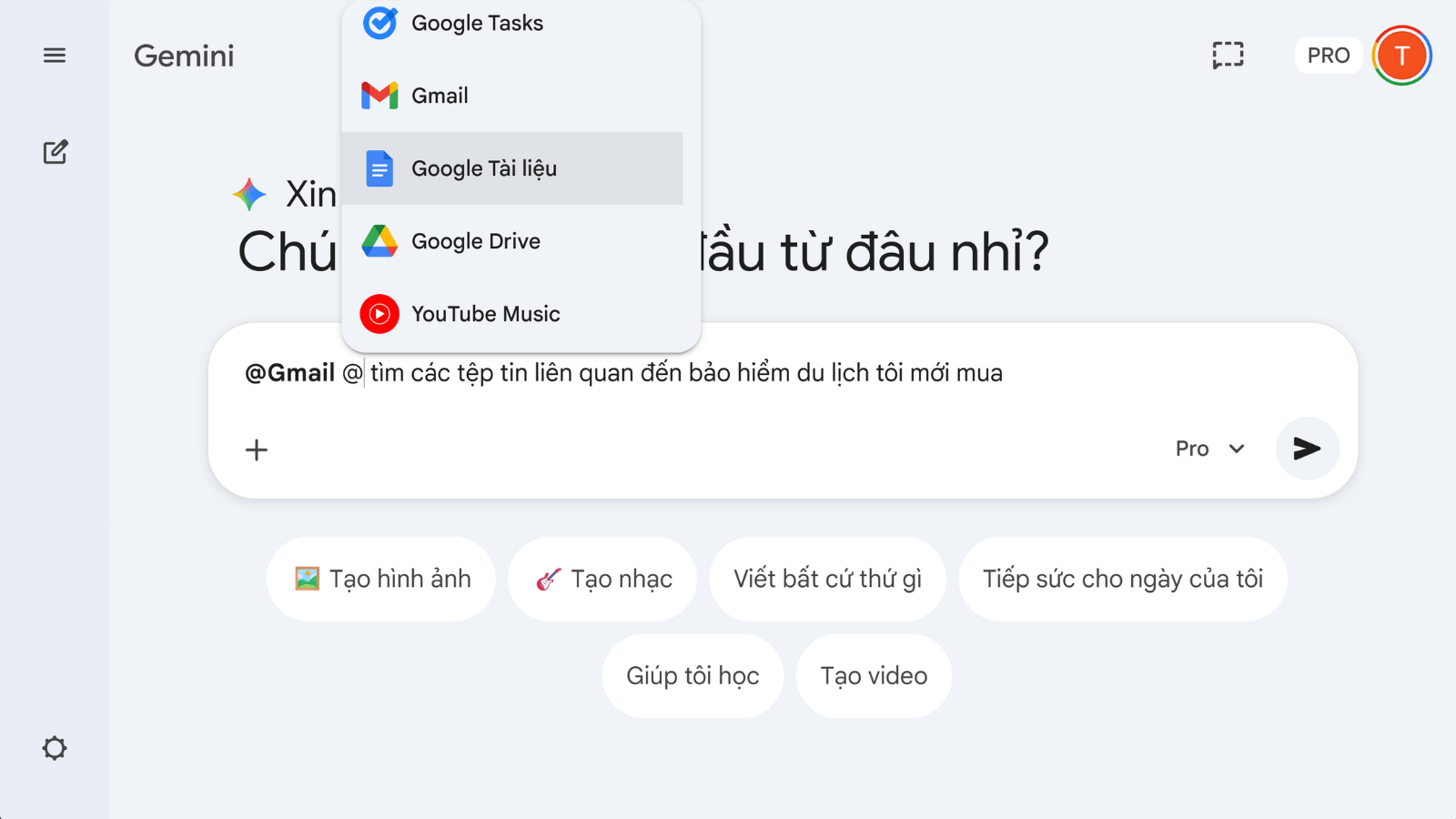 Một trong những khác biệt của Gemini so với ChatGPT là khả năng liên kết trực tiếp với các ứng dụng thuộc hệ sinh thái Google như Gmail, Google Drive và Google Docs. Thay vì phải mở từng ứng dụng để tìm kiếm các tệp tin hoặc email cũ, bạn có thể gõ ký tự @ kèm theo tên ứng dụng để yêu cầu AI trích xuất thông tin. Ví dụ, khi cần tìm lại một tài liệu mà không nhớ vị trí ở đâu, bạn chỉ cần nhập câu lệnh: “@Google Drive và @Gmail hãy tìm các tệp tin liên quan đến bảo hiểm du lịch tôi mới mua”. Tính năng này giúp người dùng tổng hợp và tra cứu thông tin nhanh chóng từ chính nguồn dữ liệu cá nhân của mình.