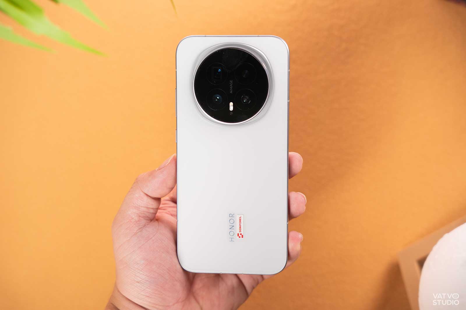 Cảm giác cầm nắm trên HONOR Magic8 là khá tốt. Dù có viên pin dung lượng lớn, máy vẫn giữ được trọng lượng chỉ 205 gram. Mặt lưng nhám mờ cũng giúp chống bám mồ hôi và dấu vân tay vô cùng hiệu quả. Một điểm cộng lớn về độ bền là máy đạt chuẩn chống nước bụi IP68, IP69 và thậm chí là IP69K, cung cấp khả năng bảo vệ vượt trội.