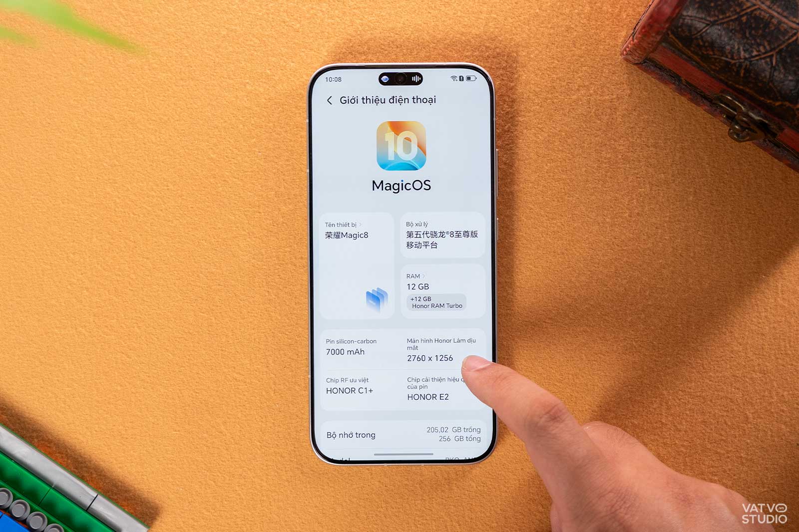 Theo công bố, màn hình trên HONOR Magic8 có độ sáng cực đại lên đến 6.000 nits. Con số này chỉ đạt được khi hiển thị nội dung HDR hoặc dùng ngoài trời nắng gắt ở một số khu vực nhất định. Còn khi dùng trong nhà, độ sáng tổng thể không quá khác biệt so với các flagship khác. Ngoài ra, máy cũng được trang bị công nghệ cảm biến vân tay siêu âm 3D dưới màn hình, cho tốc độ phản hồi rất nhanh và chính xác.