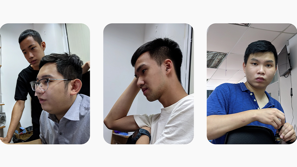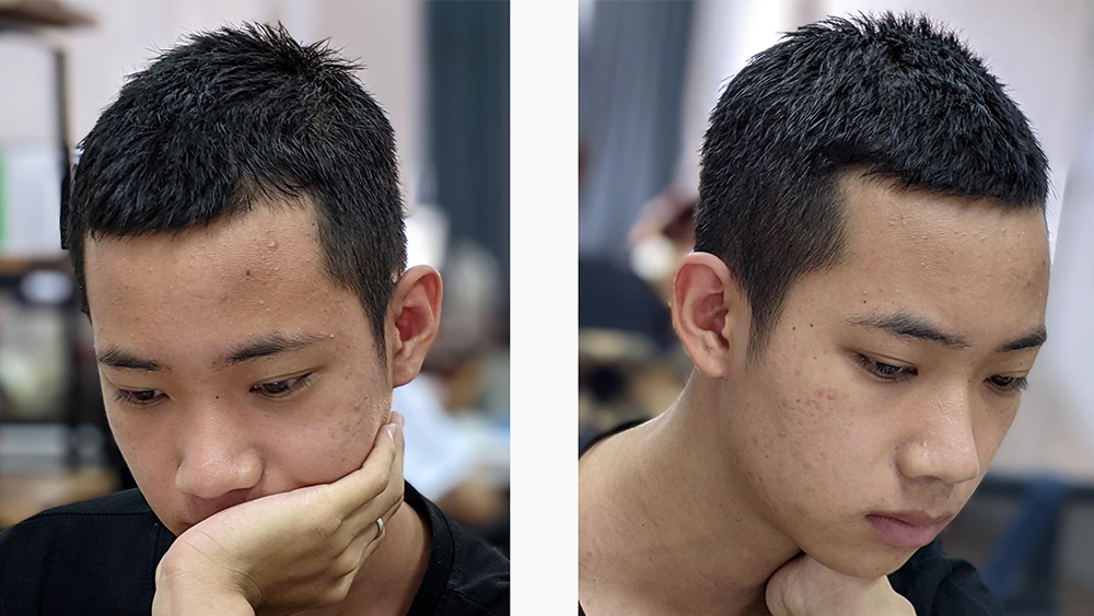 Các bạn có thể thấy rằng chỏm tóc te tua của anh bạn da đen không hề bị lẹm đi với bức ảnh được chụp từ Pixel 3A XL, thậm chí những nốt mụn trên trán và cả ở đuôi lông mày trái hiện lên rất rõ, da người sáng màu theo thiên hướng chân thực chứ không bị làm trắng và cà mịn quá đà như trên Note 20 Ultra.