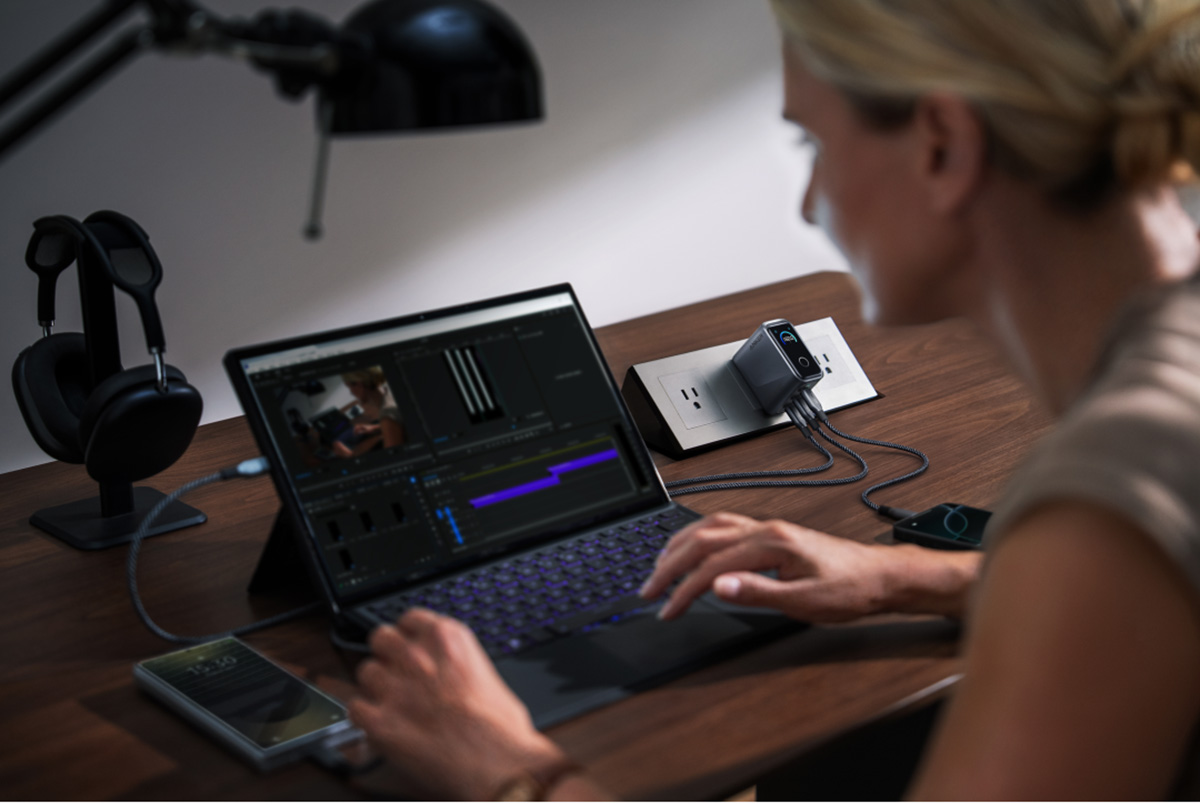 Tiếp theo là củ sạc Prime mới, được Anker quảng cáo là nhỏ hơn 43% so với củ sạc 140W của Apple. Củ sạc này có ba cổng USB-C, mỗi cổng hỗ trợ công suất 140W, nhưng tổng công suất khi sạc đồng thời ba thiết bị là 210W. Đáng chú ý, củ sạc này cũng có màn hình hiển thị thông số và kết nối Bluetooth với ứng dụng. Sản phẩm có giá 149 USD và sẽ bán ra vào ngày 25 tháng 9.