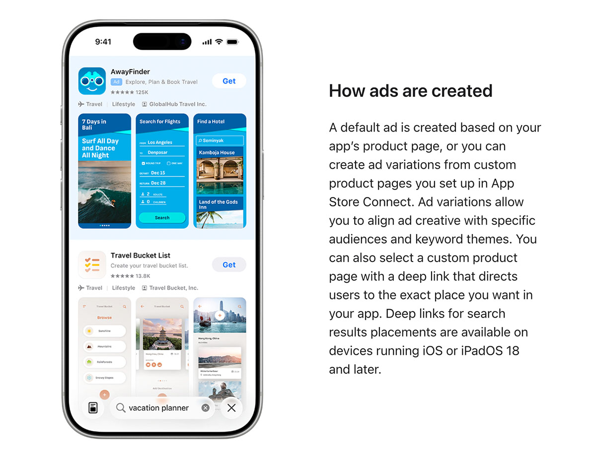 Trong thông báo mới nhất trên trang dành cho các nhà phát triển, Apple cho biết sẽ mở rộng số lượng quảng cáo hiển thị khi người dùng tìm kiếm trên App Store. Động thái này nhằm “tăng cơ hội tiếp cận cho các nhà quảng cáo” trong bối cảnh hành vi tìm kiếm của người dùng đang thay đổi.