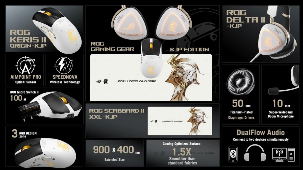 Ngoài laptop, ASUS còn dự định tung ra các phụ kiện đồng bộ bao gồm chuột ROG Keris II Origin, tai nghe ROG Delta II và tấm lót chuột ROG Scabbard với logo Kojima Productions màu vàng. Hiện tại, ASUS vẫn chưa công bố giá bán và thời điểm lên kệ chính thức của ROG Flow Z13-KJP. Tuy nhiên, với cấu hình thử nghiệm có giá hơn 2.000 USD, phiên bản giới hạn này được dự báo sẽ có mức giá cao hơn đáng kể và hướng đến đối tượng người dùng yêu thích sưu tầm.