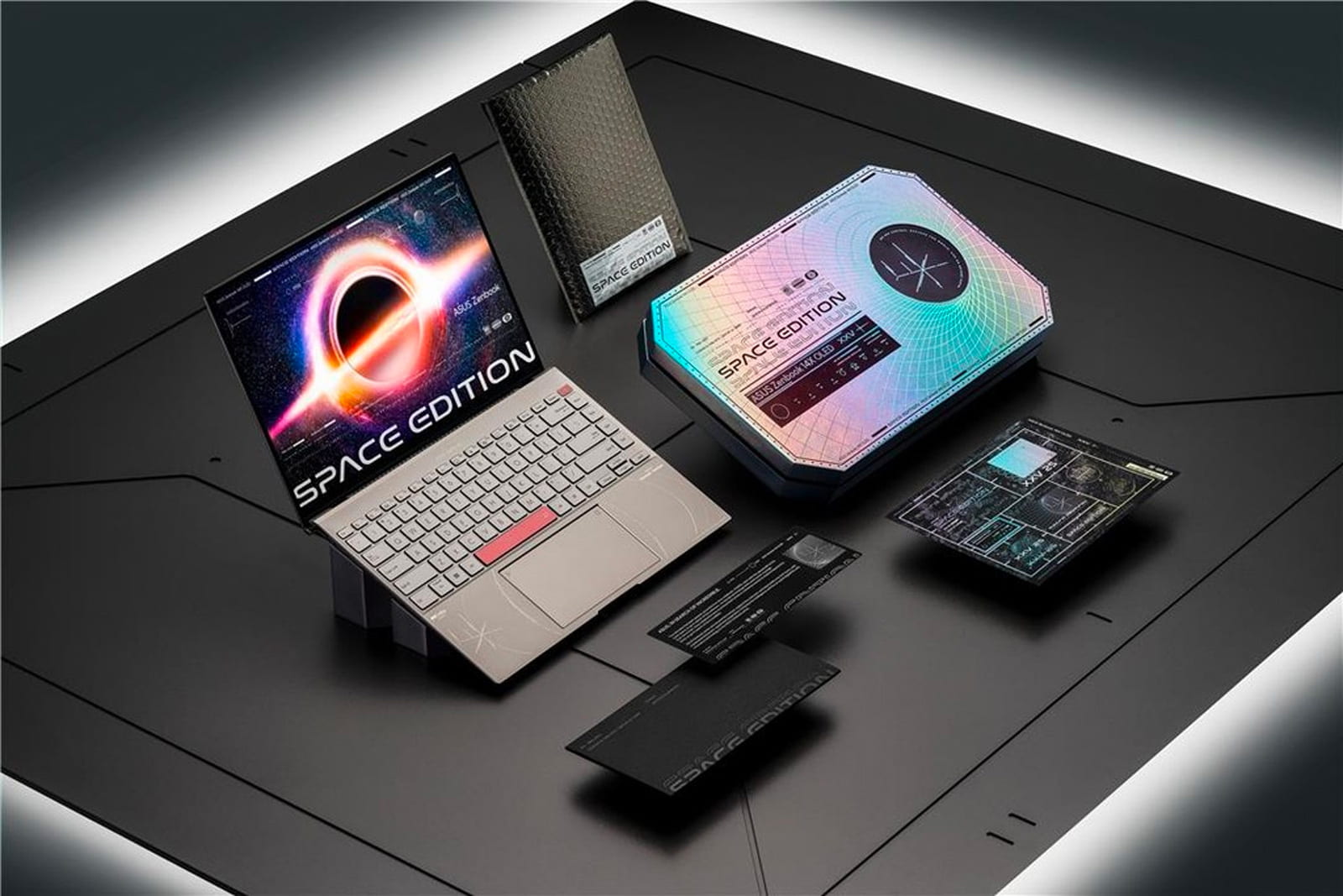 Theo tinh thần chinh phục khám phá, Zenbook 14X OLED Space Edition ẩn chứa nhiều bất ngờ thú vị thể hiện qua mã Morse và nhiều họa tiết tinh tế trên toàn bộ máy. Sản phẩm có thiết kế độc đáo với chủ đề vũ trụ, được lồng ghép tài tình trong các đường nét, màu sắc và công nghệ mới. Máy có lớp phủ màu Zero-G Titanium đại diện cho loại vật liệu được sử dụng rộng rãi trong quá trình chế tạo tàu vũ trụ.