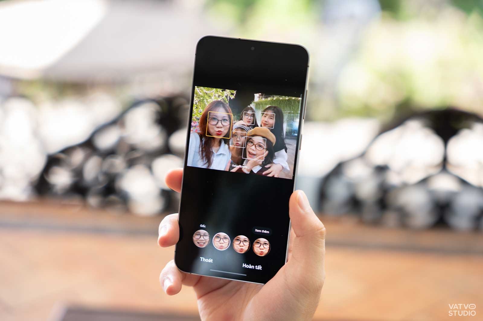 Tính năng Best Face trên Galaxy S25 FE sinh ra để giải quyết vấn đề này. Khi chụp một loạt ảnh nhóm, AI sẽ tự động nhận diện khuôn mặt của từng người. Sau đó, bạn có thể chạm vào mặt của bất kỳ ai trong ảnh và chọn lại biểu cảm tốt nhất của họ từ các bức ảnh đã chụp trước đó. AI sẽ ghép nối các biểu cảm này lại.