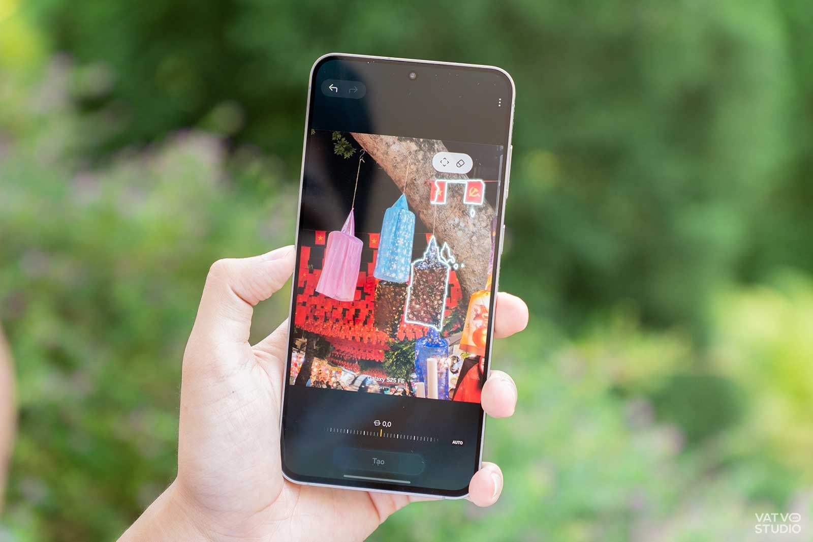 Ngoài ra, nhằm tận dụng tối đa sức mạnh camera trên Galaxy S25 FE, các bạn trẻ có thể áp dụng một vài mẹo nhỏ. Đầu tiên, hãy thử giảm thanh đo sáng (exposure) xuống một chút khi chụp các nguồn sáng mạnh như đèn LED. Việc này giúp đèn không bị cháy sáng, giữ được màu sắc rực rỡ và tạo ra độ tương phản tốt hơn cho bức ảnh.