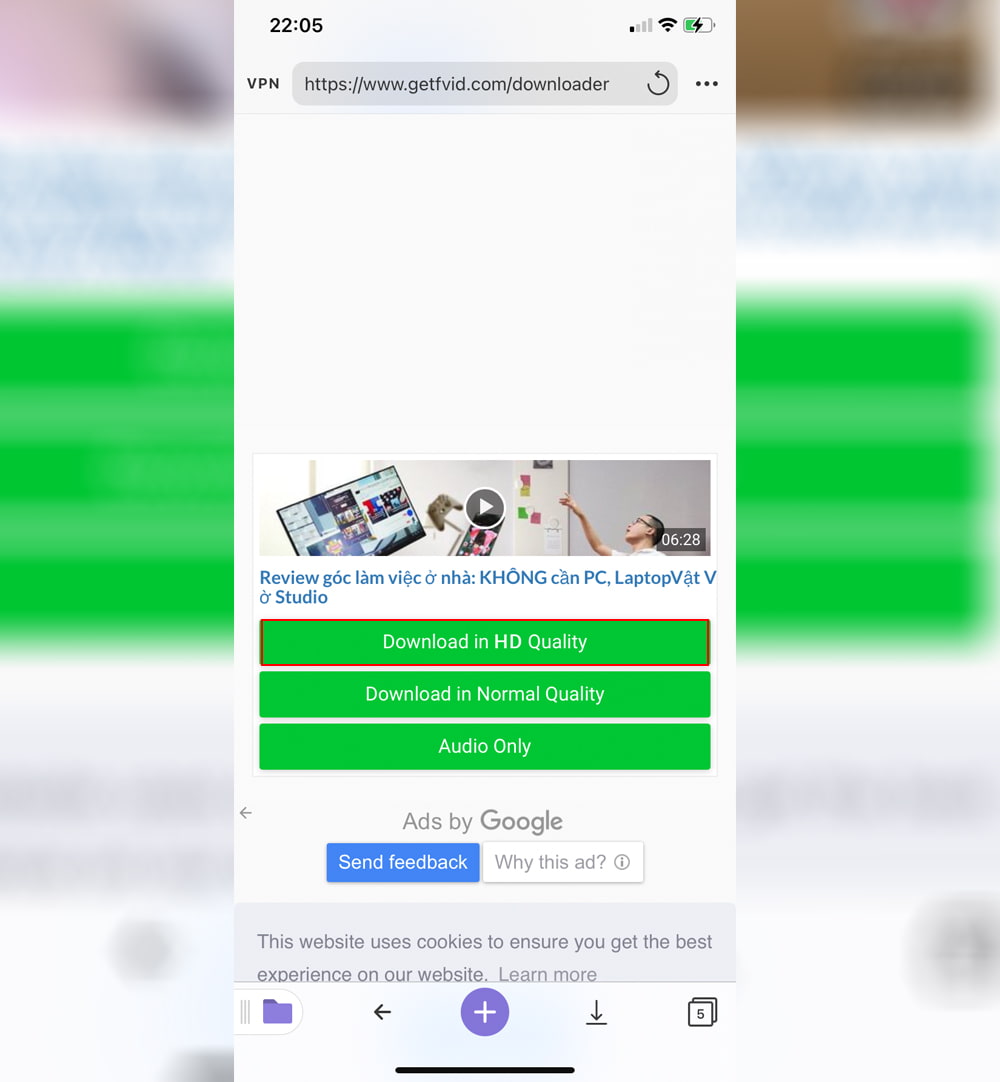 • Bước 4: Bấm Download in HD Quality để tải về với chất lượng video HD.