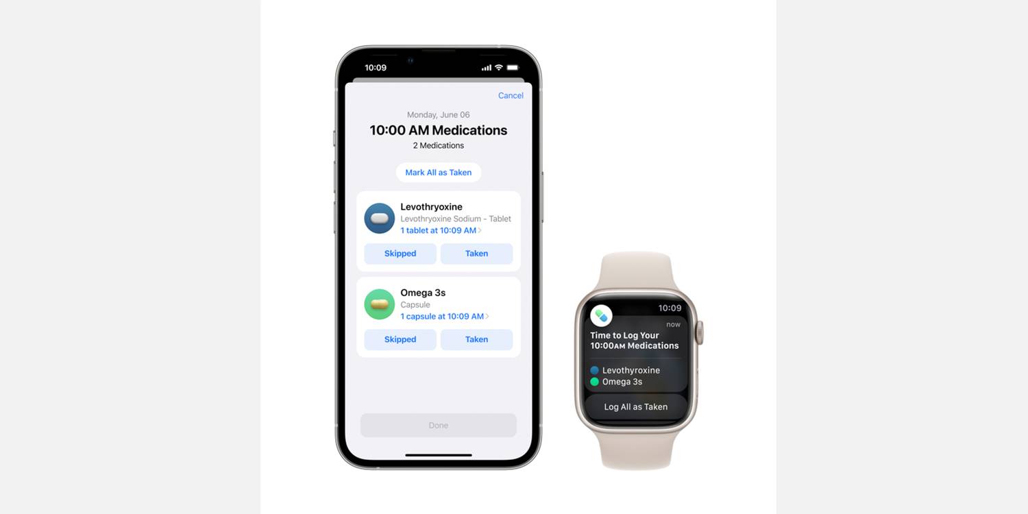 Ứng dụng thuốc mới trên watchOS 9 và iOS 16 cho phép người dùng theo dõi và quản lý thuốc, thực phẩm bổ sung của mình một cách dễ dàng. Ngoài ra, người dùng cũng có thể tạo lịch trình và nhận lời nhắc uống thuốc vào những thời điểm nhất định.