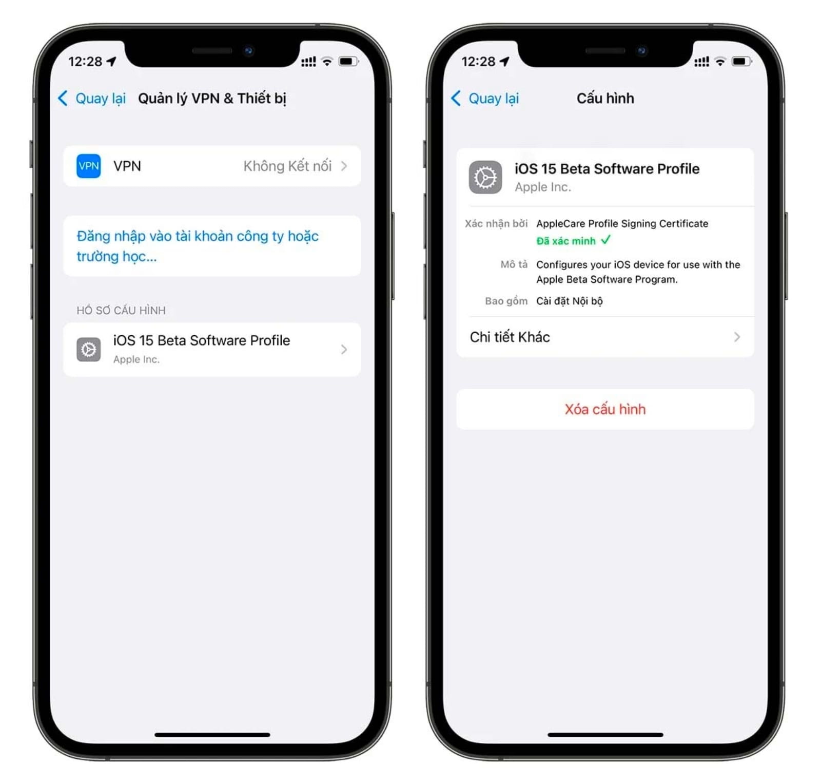 Do bản Beta được liên kết với hồ sơ thử nghiệm (Beta Profile) đã được cài đặt và xác minh trên iPhone, nên khi này, bạn cần xóa hồ sơ đi và tiến hành cập nhật trực tiếp qua hệ thống là đã xong.