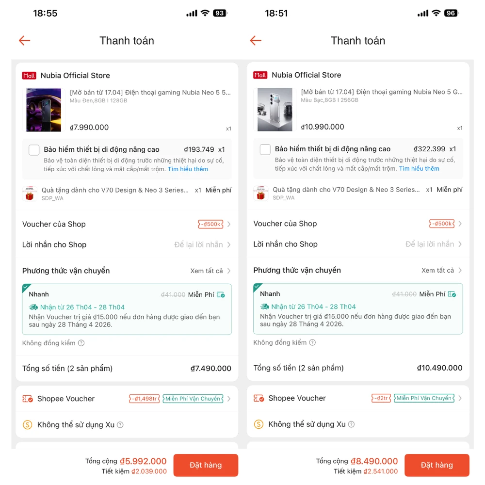 Từ trước đến nay, các mẫu điện thoại nubia luôn có chính sách giảm giá khá mạnh khi mở bán trên sàn thương mại điện tử. Dòng nubia Neo 5 series cũng không ngoại lệ. Nếu mua đúng thời điểm, người dùng hoàn toàn có thể tiết kiệm tới gần 30% so với giá niêm yết.