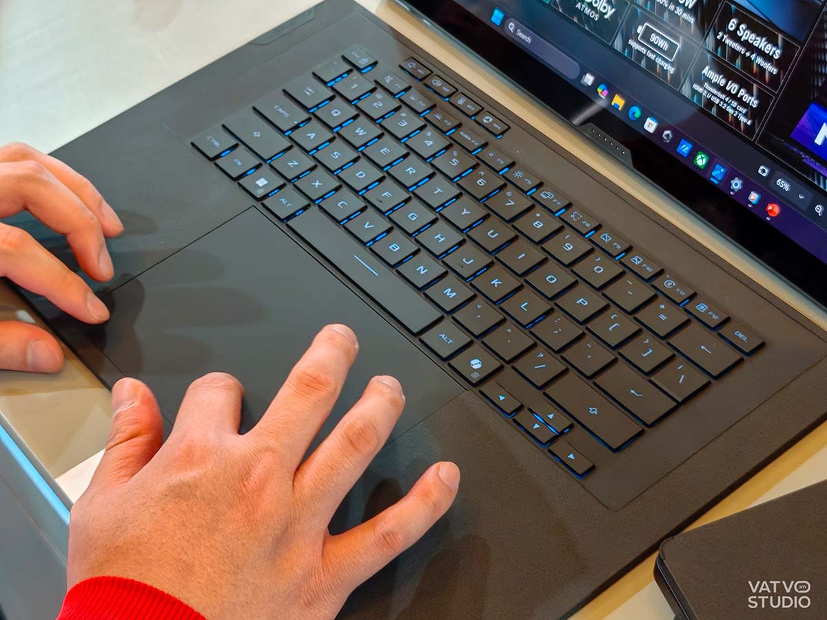 Về sức mạnh phần cứng, chiếc máy này được trang bị bộ vi xử lý Intel Core Ultra mới nhất, hay còn gọi là Panther Lake, cùng card đồ họa NVIDIA GeForce RTX 50 series với tùy chọn cao nhất lên đến RTX 5090. Để duy trì hiệu năng ổn định trong thân máy có độ dày chỉ khoảng 19,6 mm, ASUS đã sử dụng hệ thống tản nhiệt buồng hơi kết hợp với vật liệu nhiệt kim loại lỏng.