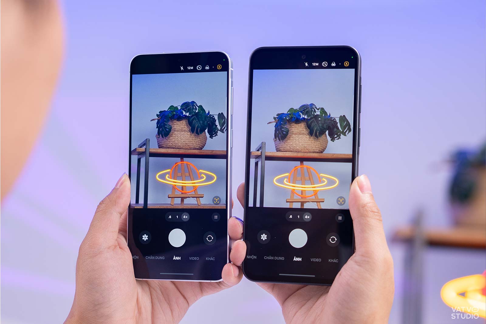 Cả hai thiết bị đều sở hữu hệ thống ba camera sau cùng camera chính độ phân giải 50MP. Bộ đôi này cũng hỗ trợ quay video độ phân giải 4K cho cả camera trước và camera sau. Tuy nhiên, sự khác biệt phần cứng thể hiện rõ ở ống kính góc siêu rộng.