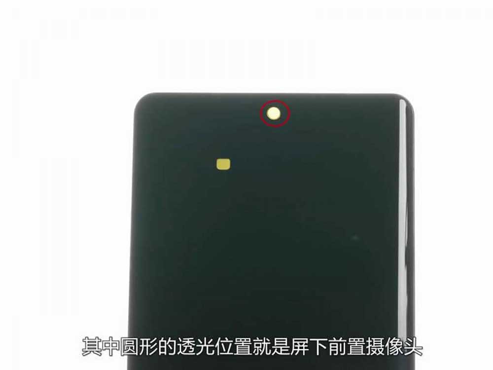 Trong hình chúng ra sẽ thấy hai khu vực được thiết kế cho phép ánh sáng đi qua: lỗ hình tròn sẽ là nơi đặt camera selfie với hệ thống điểm ảnh được tùy chỉnh cho phép ánh sáng đi qua nhiều nhất có thể. Lỗ hình vuông sẽ là nơi chứa những cảm biến ánh sáng khác, bề mặt của lỗ không cho phép nhiều ánh sáng đi qua giống như camera selfie.