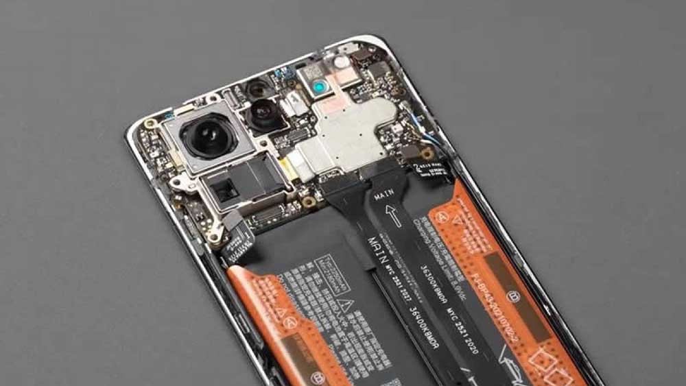 Để ý một chút, chúng ta có thể thấy Mi Mix 4 được trang bị hệ thống pin kép, điều này giúp máy có tốc độ sạc nhanh hơn đồng thời nhiệt lượng tỏa ra cũng được hạn chế. Cụ thể, Mi Mix 4 sẽ chỉ mất 15 phút để sạc đầy 100% và 10 phút cho 80%. Có thể thấy ngoài camera ẩn dưới màn hình, thiết kế nội thất tổng thể của Mi Mix 4 có vẻ tương tự như những chiếc smartphone thông thường khác.