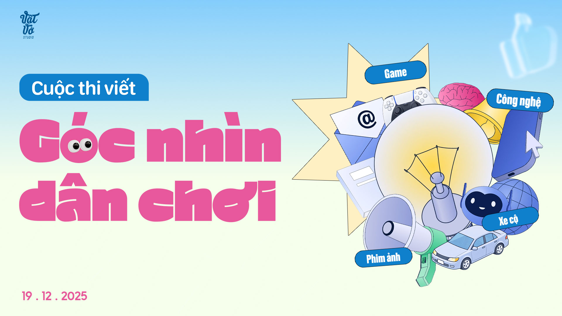 Một năm 2025 sôi động sắp khép lại. Hãy cùng Vật Vờ Studio tổng kết những dấu ấn đáng nhớ nhất của bạn thông qua cuộc thi viết GÓC NHÌN DÂN CHƠI. Thay vì để những trải nghiệm về món đồ công nghệ tâm đắc, những chuyến đi cùng chiếc xe thân yêu hay cảm xúc về một bộ phim hay trôi vào quên lãng, hãy tái hiện chúng qua ngòi bút của bạn. Đây là cơ hội để bạn chia sẻ đam mê, khẳng định quan điểm cá nhân và kết nối với cộng đồng hàng trăm ngàn thành viên cùng sở thích.