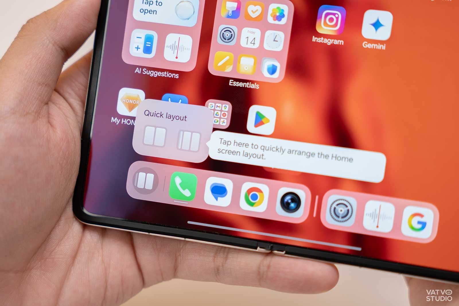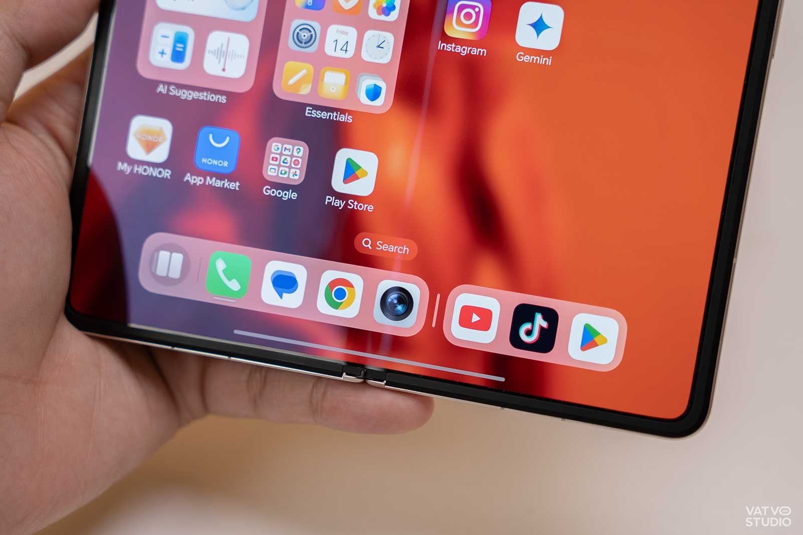 - Thanh dock bên dưới HONOR Magic V5 cũng không có tùy chọn giữ cố định (ghim lại). Vì thế, với những người thường xuyên làm đa nhiệm, chuyển ứng dụng liên tục sẽ thấy bất tiện hơn một chút.