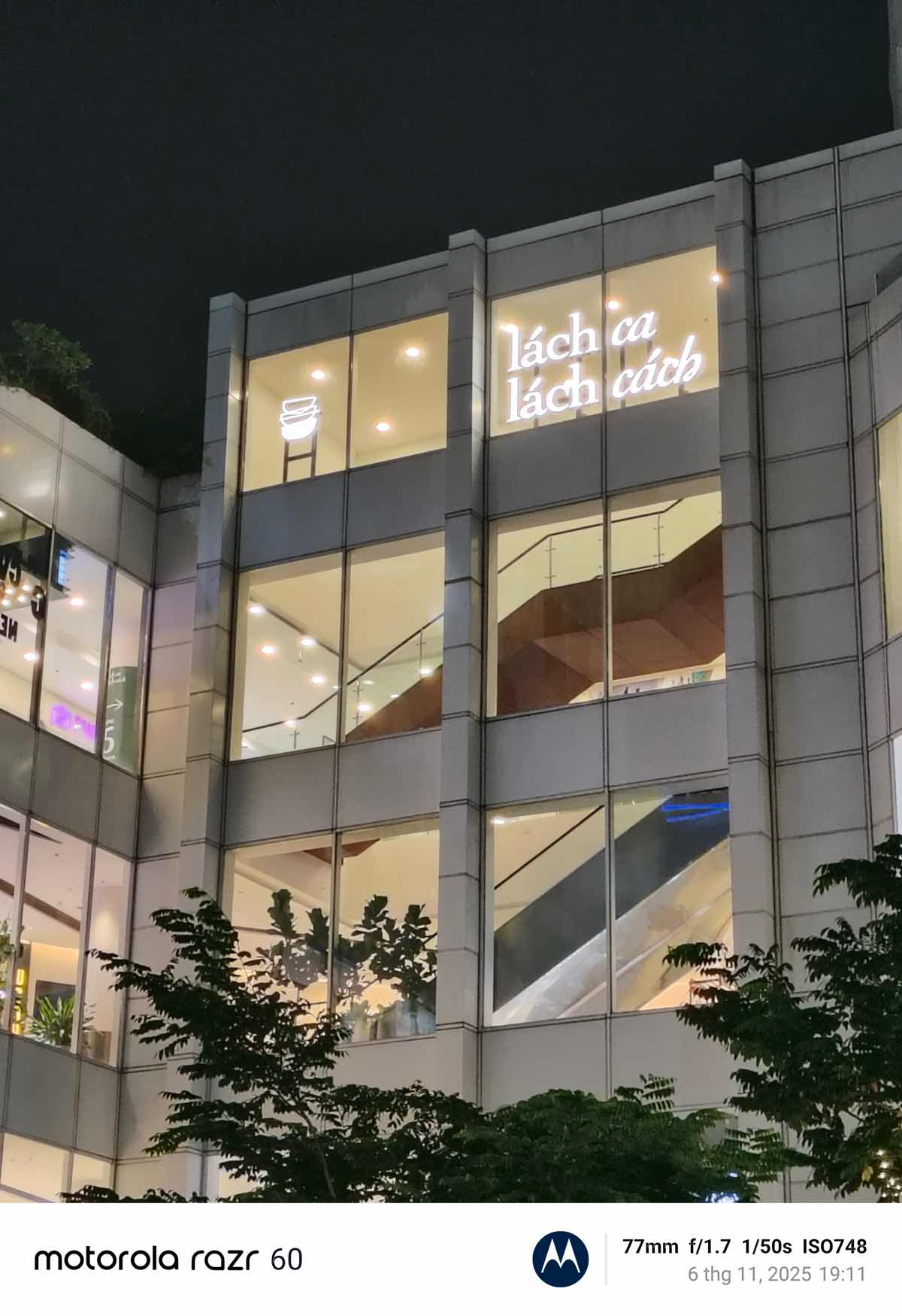 Tình trạng noise thể hiện rõ rệt nhất ở các vùng bầu trời đêm hoặc các mảng màu đồng nhất. Do hạn chế về thuật toán khử nhiễu và sức mạnh của ISP, ảnh chụp đêm của Razr 60 trông không thực sự mịn màng. Ánh sáng từ các nguồn đèn đôi khi bị xử lý hơi gắt, làm mất đi tính tự nhiên của khung cảnh.