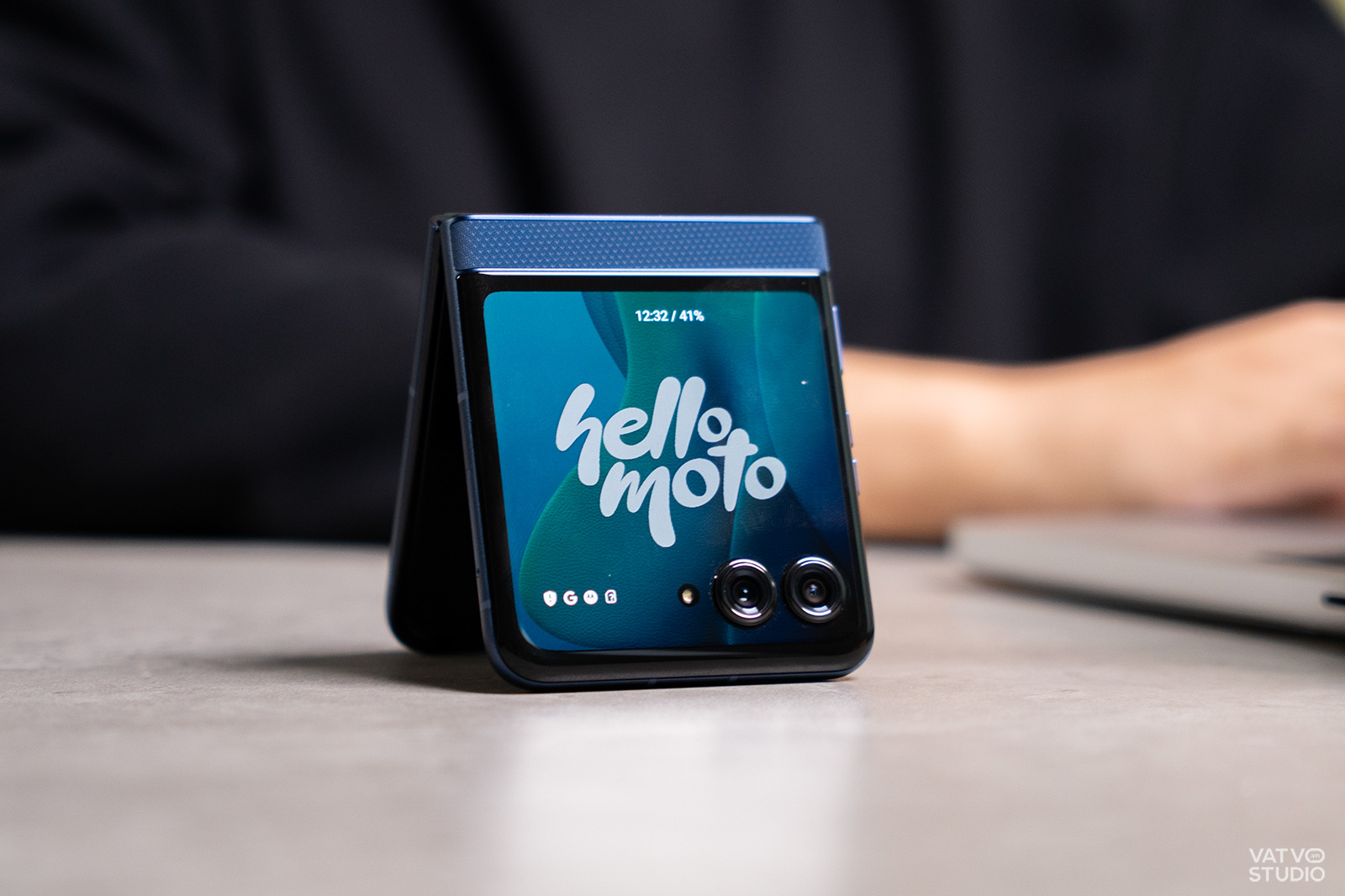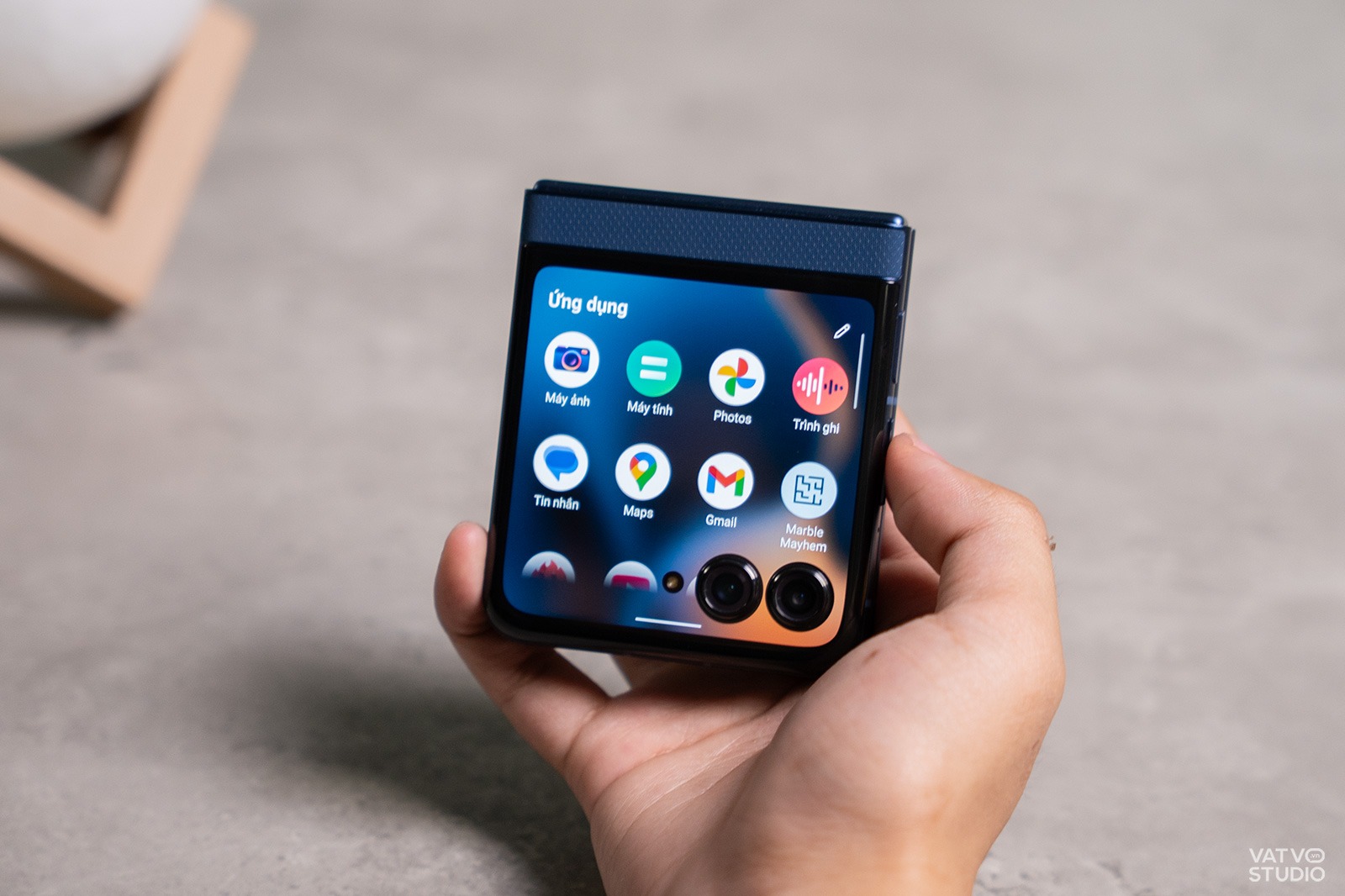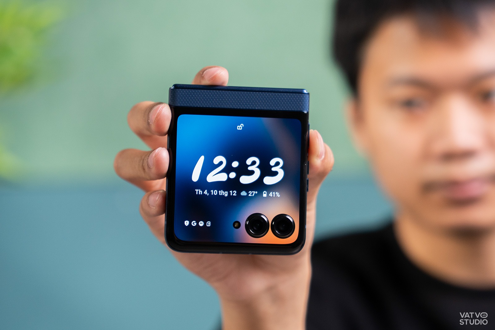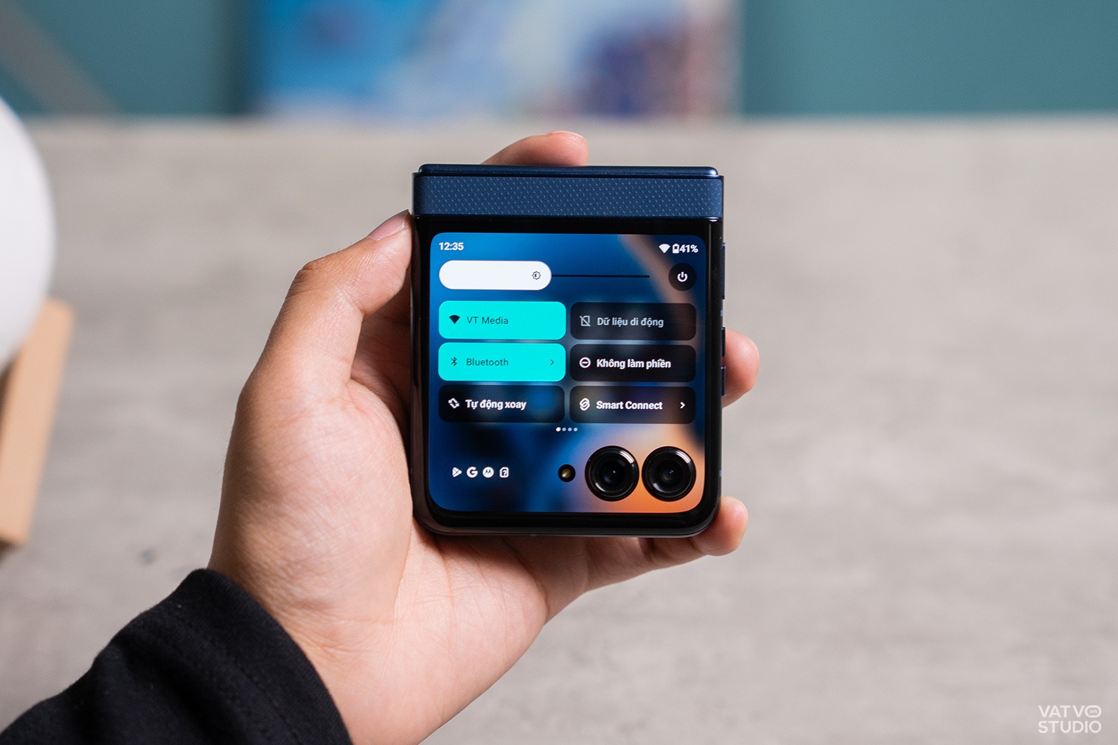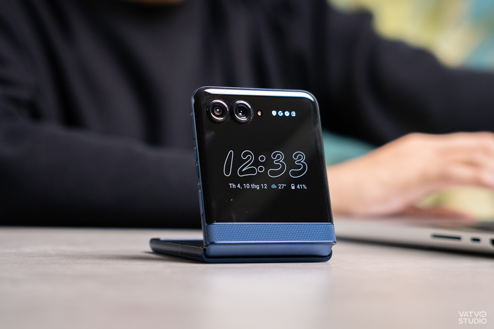 Khả năng cá nhân hóa cũng được Motorola làm rất tốt. Ngoài việc thay đổi hình nền hay chụp ảnh selfie thông thường, Motorola Razr 60 còn sở hữu chế độ màn hình để bàn (Tent Mode). Khi gập máy lại và đặt úp xuống, màn hình sẽ hiển thị một kiểu hình nền chờ, nhưng khi dựng đứng máy lên dạng lều, nó sẽ tự động chuyển sang giao diện khác, ví dụ như đồng hồ để bàn.