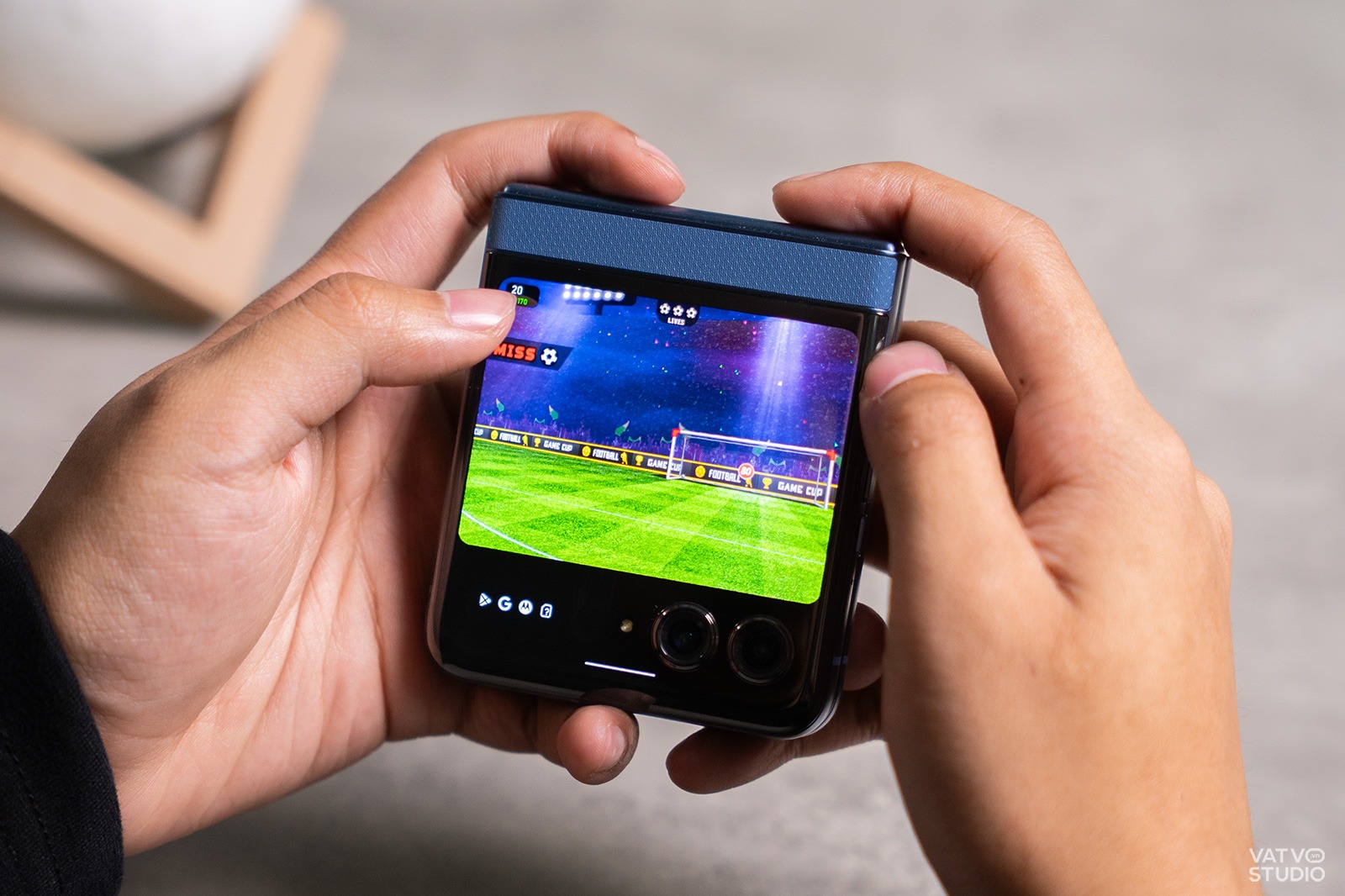 Ngoài ra, khi vuốt sang trái, Motorola Razr 60 cung cấp một kho trò chơi nhỏ được tối ưu riêng cho màn hình phụ này. Các tựa game như đá bóng, mê cung hay vượt chướng ngại vật xây dựng với lối chơi đơn giản, đồ họa khá đẹp và chỉn chu.