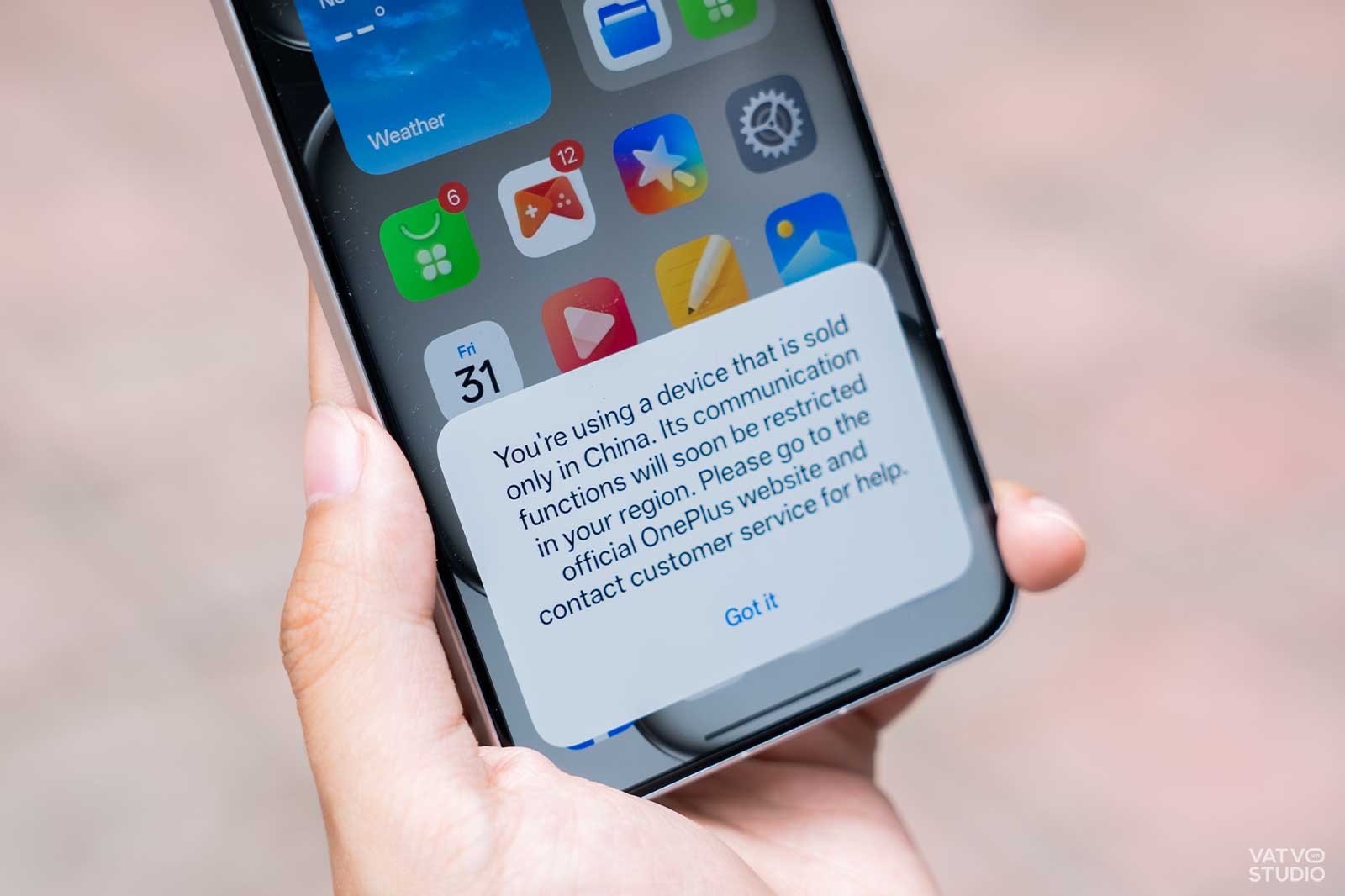 Tiếp theo, do là một mẫu máy OnePlus nội địa, sản phẩm này sẽ có những vấn đề về SIM, sóng. Khi thử lắp một chiếc SIM, máy sẽ hiện ngay một dòng thông báo với nội dung: “Thiết bị này chỉ được bán tại Trung Quốc và sẽ có giới hạn khi mà dùng ở các thị trường khác”. Nhìn chung, trước khi quyết định mua OnePlus Ace 6 xách tay ở thời điểm hiện tại, người dùng nên tham khảo kỹ lưỡng với bên bán hàng để đảm bảo yên tâm trong quá trình sử dụng.