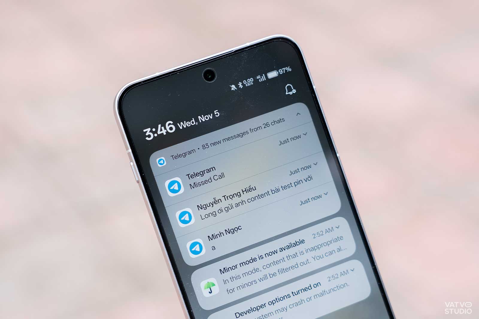 Khả năng nhận thông báo trên OnePlus Ace 6 ở mức ổn. Mẫu máy có thể đẩy các thông báo từ ứng dụng nhắn tin như Messenger hay Telegram khá nhanh và ổn định. Song, vẫn sẽ có trường hợp máy không nhận được thông báo, nhất là khi đã xóa đa nhiệm.