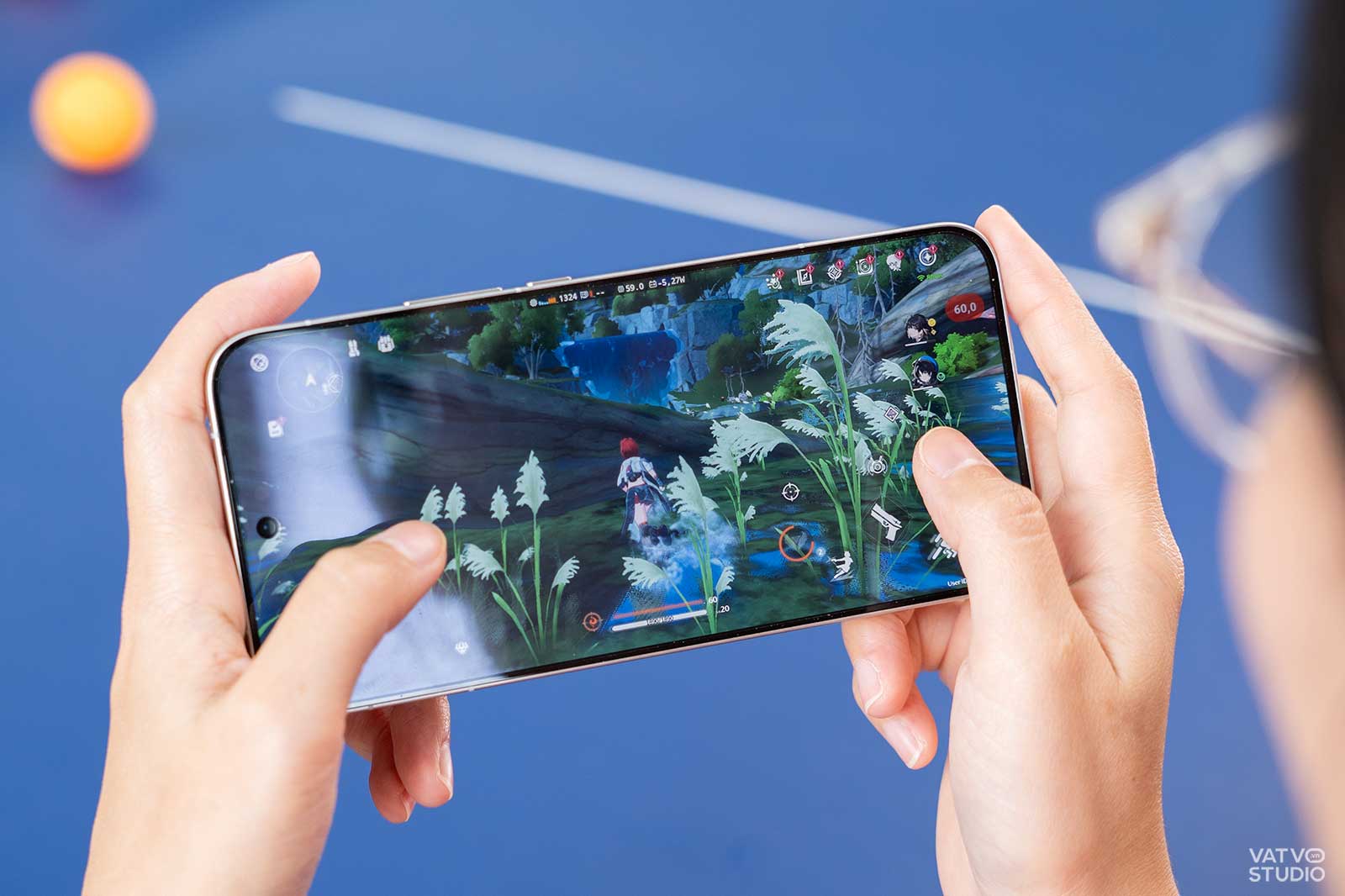 Tiếp đến, mình chuyển sang Genshin Impact. Mình sẽ đẩy thiết lập đồ họa lên mức Cực cao và 60 FPS. Tại đây, Snapdragon 8 Elite Gen 5 bắt đầu thể hiện sức mạnh của mình. Biểu đồ FPS cho ra cực kỳ đều đặn, gần như thẳng từ đầu đến cuối màn chơi. Mức FPS trung bình đạt con số ấn tượng là 59,9 FPS.