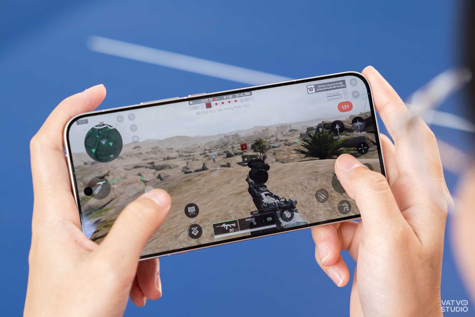 Chuyển sang một tựa game bắn súng là Delta Force, mình thiết lập đồ họa ở mức “Tiêu chuẩn” (mức cao nhất game cho phép) và 120 FPS. Tương tự như LMHT: Tốc Chiến, iQOO 15 tiếp tục cho ra một trải nghiệm vô cùng mượt mà. Mức FPS trung bình đạt 118,7 FPS, mang đến trải nghiệm mượt mà, ổn định.