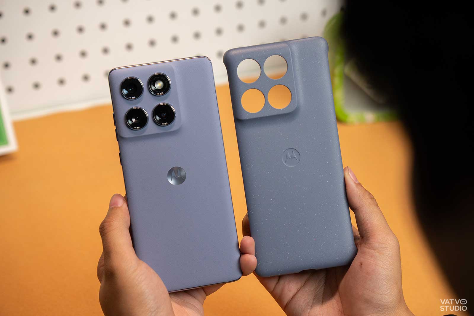 Dù phần khung viền của máy chỉ được làm bằng nhựa, nhưng cách motorola hoàn thiện các góc bo và cụm camera nhô lên rất tinh tế khiến tổng thể máy vẫn toát lên vẻ sang trọng. Về độ bền, mình hoàn toàn yên tâm khi biết máy được trang bị kính cường lực Gorilla Glass 7i và đạt đầy đủ các chuẩn chống nước, bụi cao cấp nhất là IP68 và IP69.