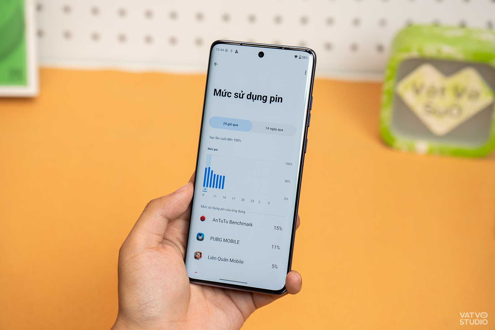 Cuối cùng là về năng lượng, viên pin 5.500mAh (lớn hơn so với mức 5.200mAh của bản quốc tế) thực sự làm mình hài lòng. Nhờ chạy hệ điều hành gần như thuần Google, nhẹ nhàng và tối ưu tốt, mình có thể sử dụng máy với thời gian sáng màn hình lên tới khoảng một ngày cho các tác vụ cơ bản. Ngay cả những hôm mình dùng nhiều, chơi game và xem YouTube liên tục, máy vẫn trụ được đến khoảng 4-5 giờ chiều mới cần sạc lại.