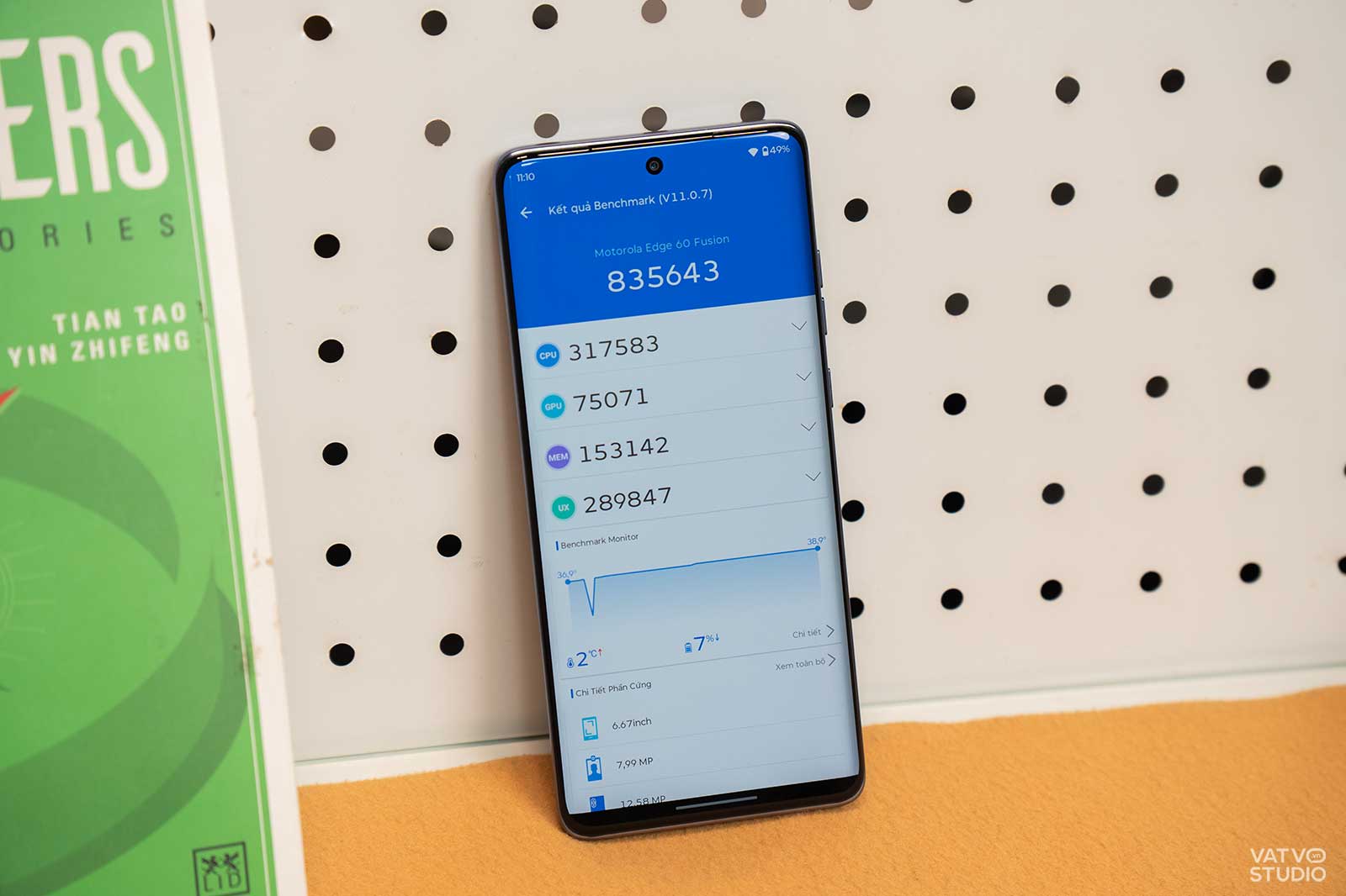 Về mặt hiệu năng, mình đánh giá motorola edge 60 fusion dừng lại ở mức “tròn vai”. Máy được trang bị con chip Dimensity 7400 (khác biệt so với chip Dimensity 7300 khi bán ở thị trường quốc tế) cùng với 8GB RAM mặc định. Với cấu hình này, mình thấy máy xử lý hoàn toàn ổn thỏa các tác vụ hàng ngày như lướt web, mạng xã hội hay xem video.