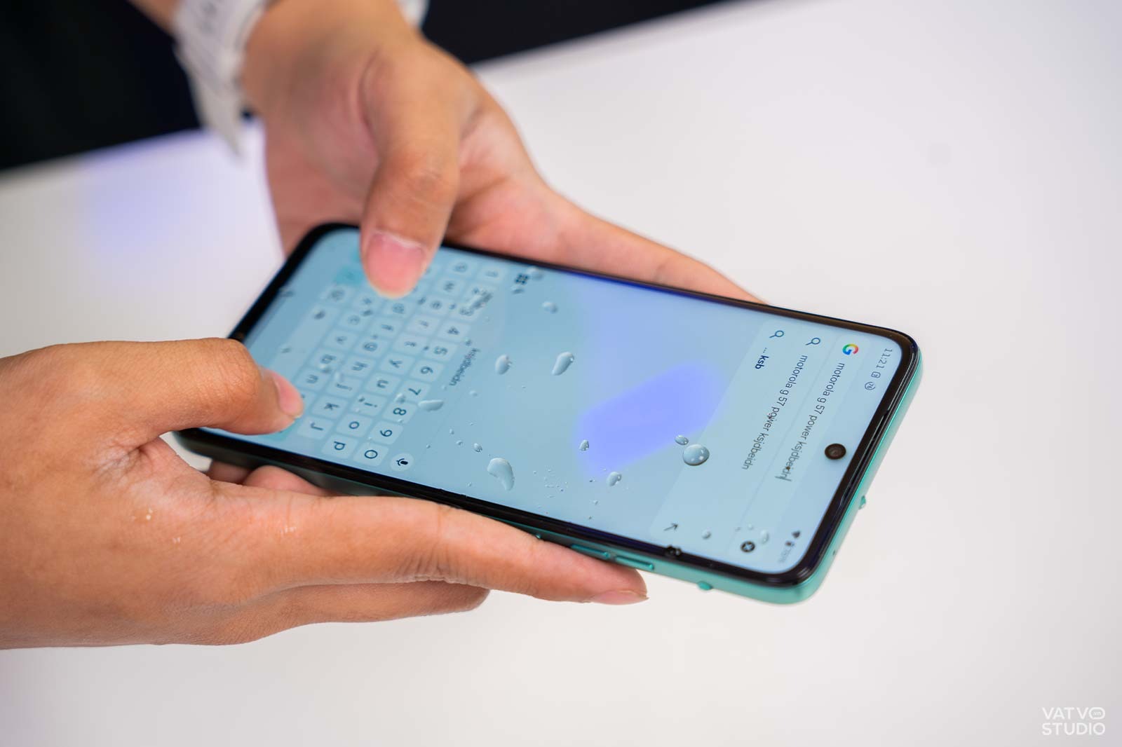 Để tăng thêm độ bền motorola đã trang bị kính cường lực Gorilla Glass 7i và tích hợp công nghệ Smart Water Touch 2.0 giúp mình vẫn có thể thao tác cảm ứng chính xác ngay cả khi ngón tay đang dính nước.