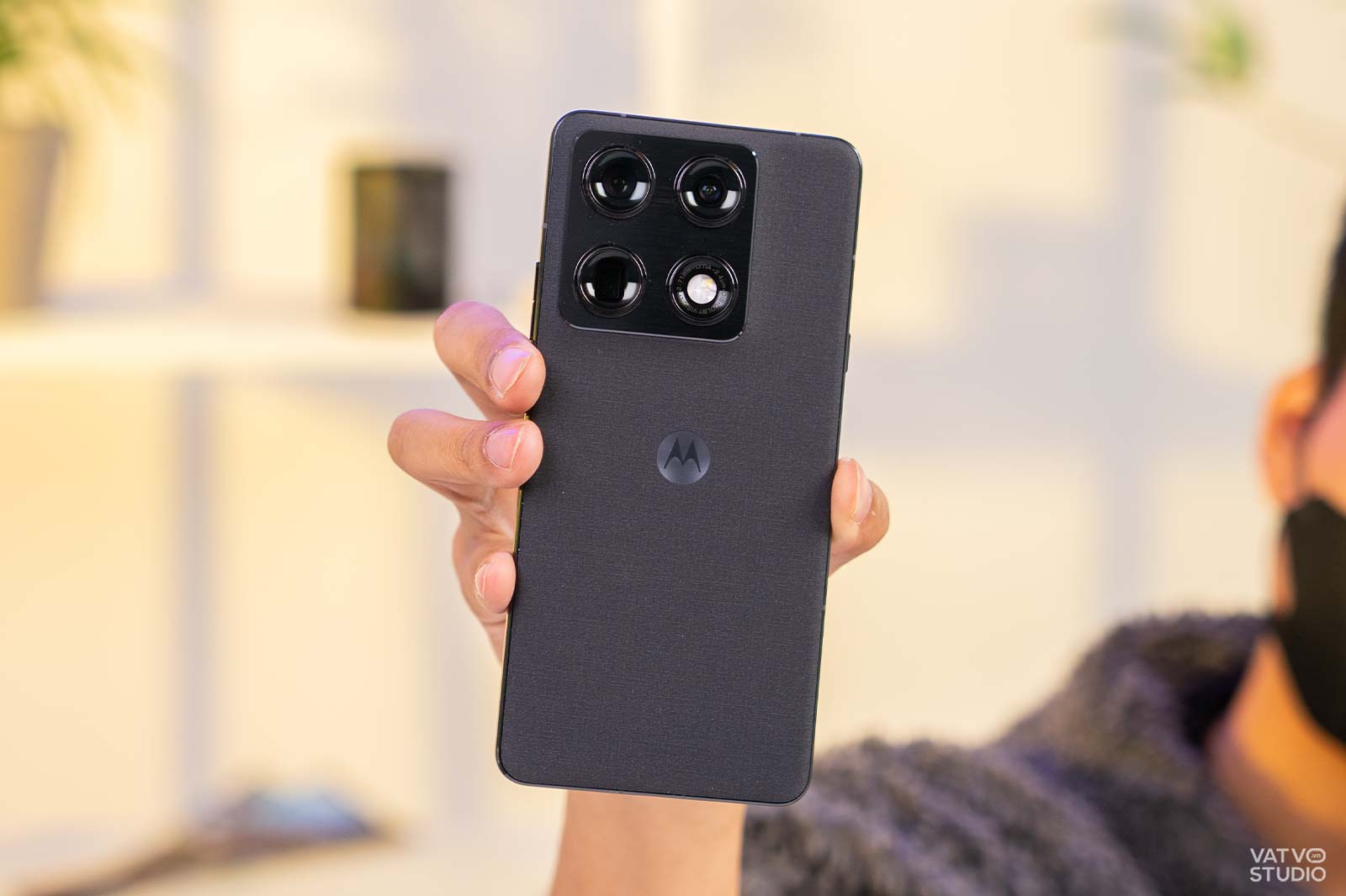 Mặt lưng của Motorola Signature được hoàn thiện theo dạng vân vải dệt độc đáo. Chất liệu này không chỉ giúp thiết bị chống bám mồ hôi, dấu vân tay hiệu quả mà còn tăng cường độ bám khi cầm nắm. Tổng thể thiết kế mang lại một dáng vẻ vô cùng sang trọng và cao cấp cho Motorola Signature. Máy cung cấp các tùy chọn màu sắc được hợp tác cùng Pantone, trong đó phiên bản mình có trên tay là màu Đen, khá trung tính và trang nhã.