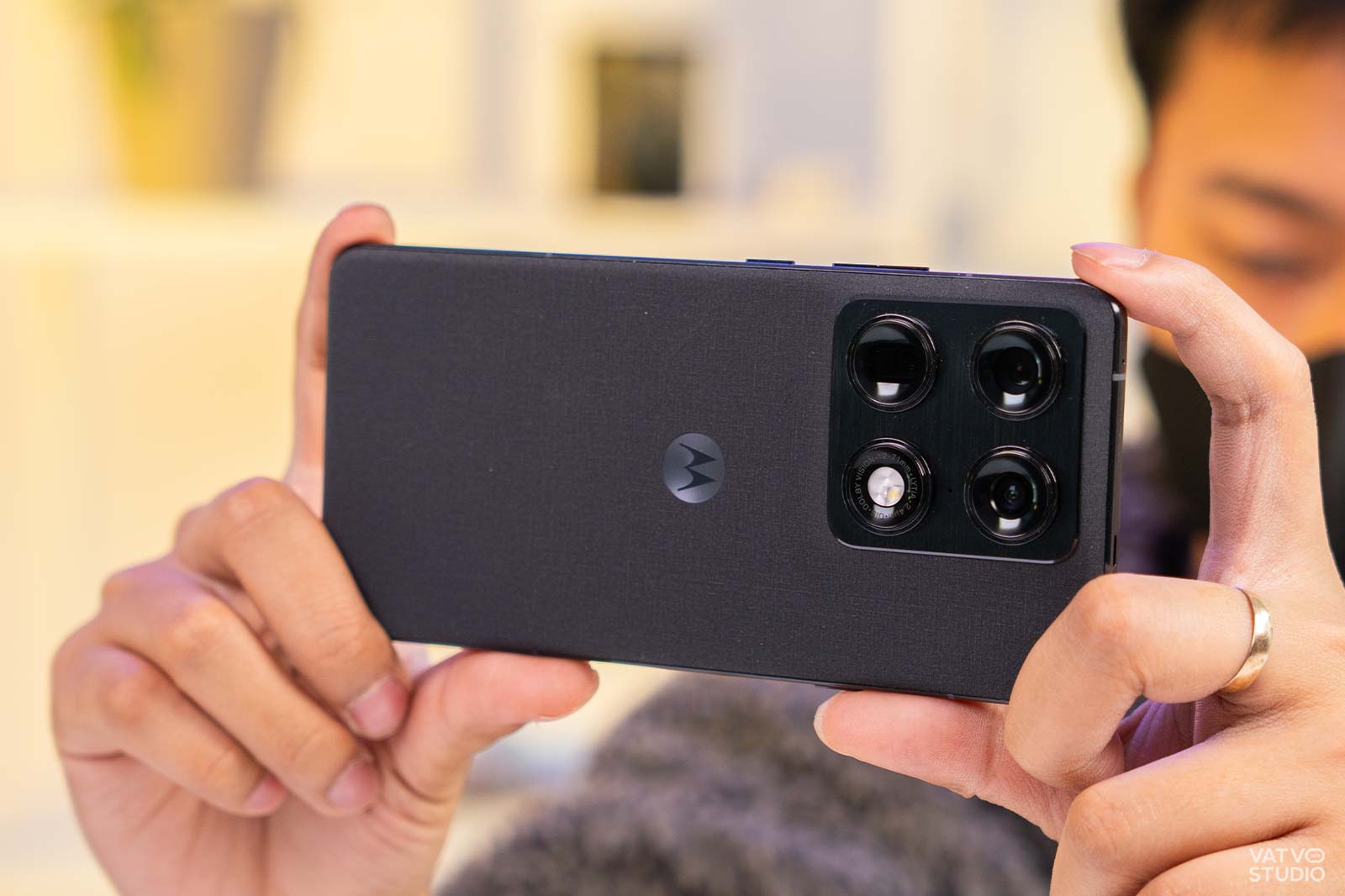 Hệ thống camera sau của Motorola Signature đảm bảo sự đa dụng với ba ống kính đều đạt độ phân giải 50MP. Cụm camera này bao gồm một cảm biến chính kích thước lớn 1/1,28 inch, một ống kính telephoto zoom quang học 3X và một camera góc siêu rộng. Nhờ thông số phần cứng ấn tượng, mẫu Motorola Signature mang đến khả năng quay chụp đa dụng, đáp ứng tốt nhiều nhu cầu lưu giữ hình ảnh khác nhau của người dùng từ phong cảnh cho đến chân dung.