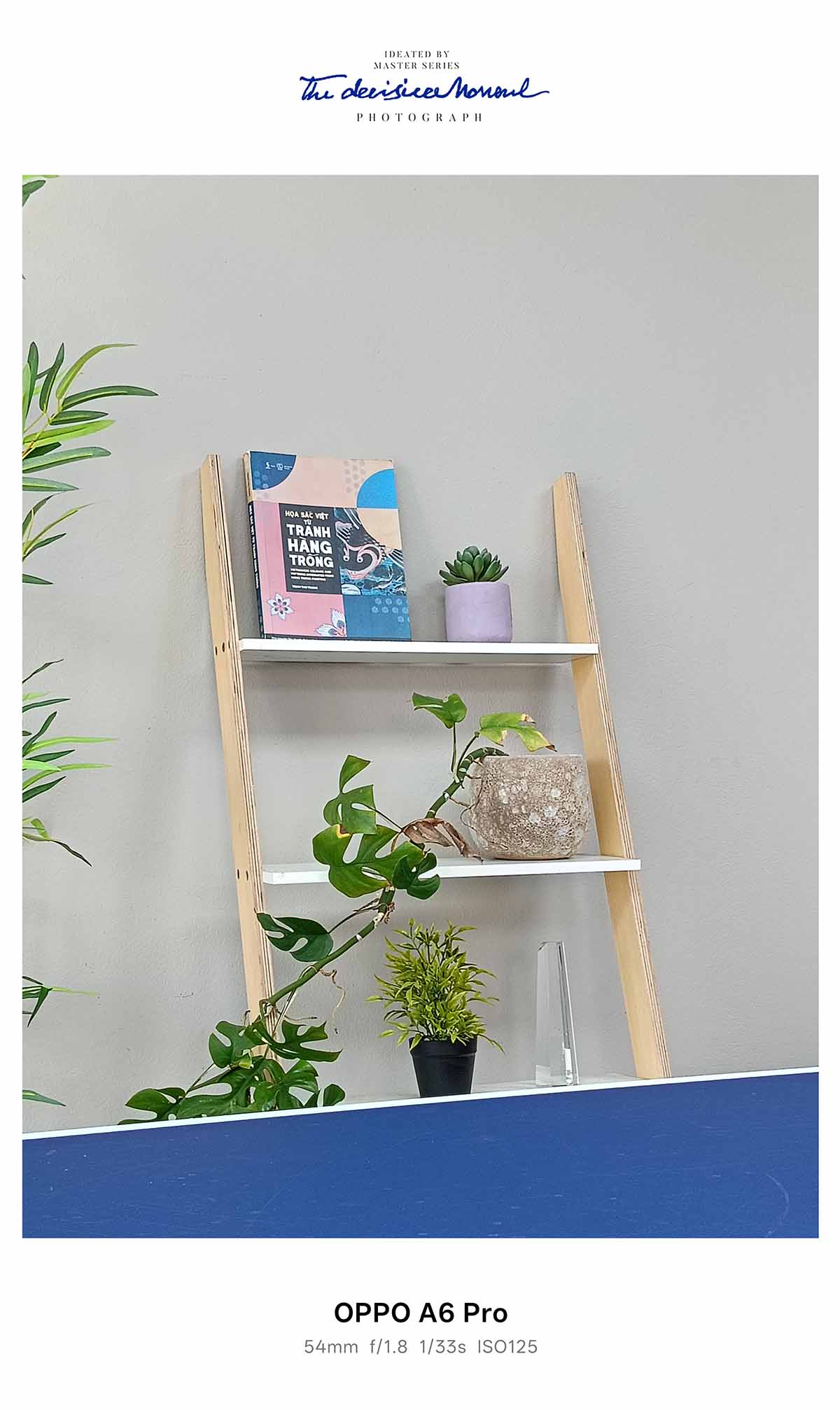 Khả năng zoom kỹ thuật số 2x (tiêu cự 54mm) cũng cho chất lượng đủ dùng, giúp mình chụp được các chủ thể ở xa hơn như biển hiệu hay các chi tiết trên giá sách. Tuy nhiên, khi chụp trong điều kiện thiếu sáng như tấm hình chụp chiếc đèn hay laptop, máy bắt đầu bộc lộ hạn chế với ảnh bị nhiễu hạt (noise) và chi tiết giảm đi. Bù lại, ảnh chân dung cho ra màu da người khá tự nhiên. Nhìn chung, camera này hoàn toàn đáp ứng được nhu cầu chụp ảnh cơ bản hàng ngày để đăng tải lên mạng xã hội, và được bổ trợ bởi bộ công cụ chỉnh sửa AI hữu ích có sẵn.