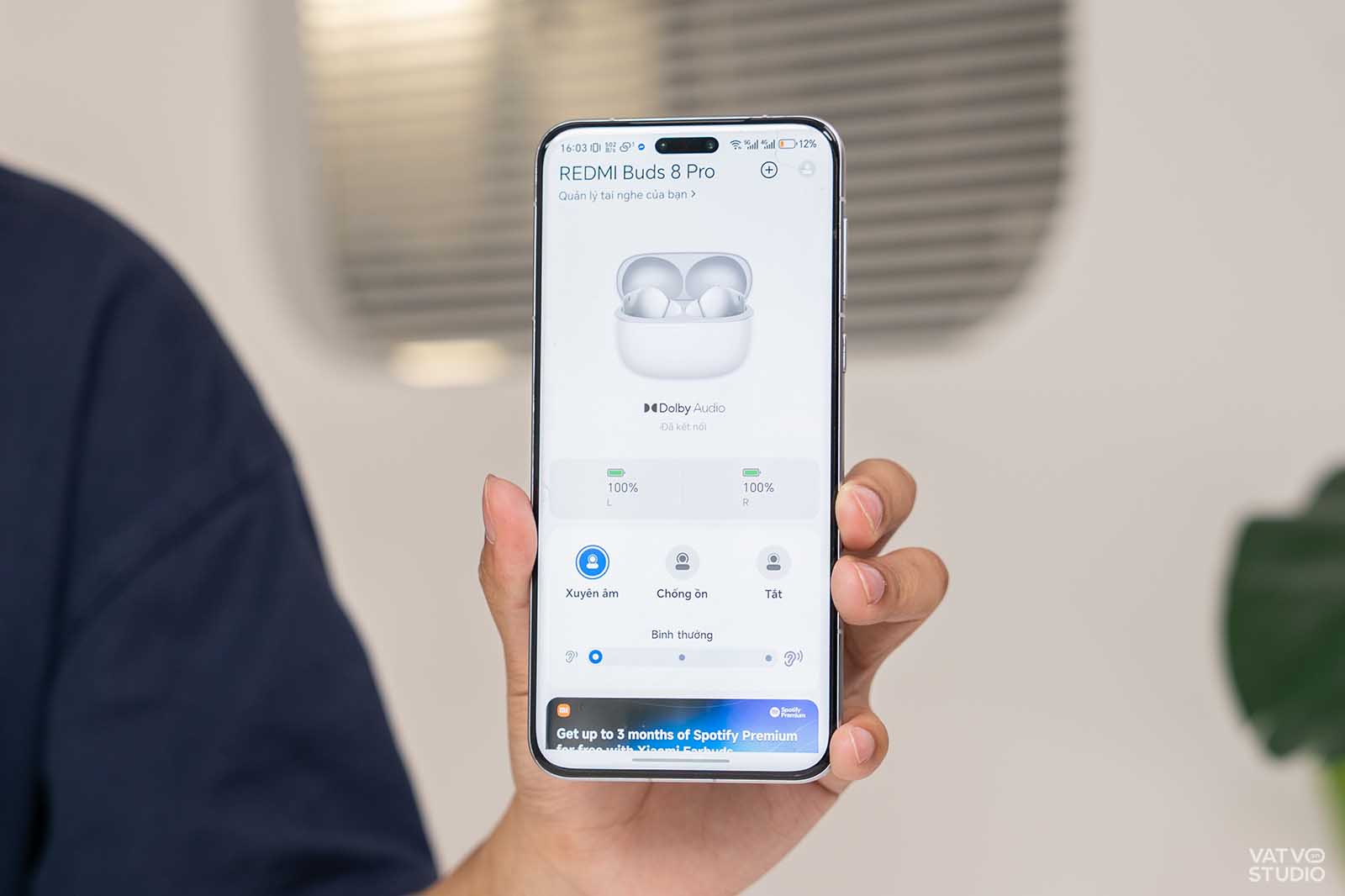 Một điểm sáng giá khác là sự góp mặt của công nghệ Dolby Audio kết hợp với âm thanh không gian (spatial audio) có theo dõi chuyển động đầu. Khi xem phim, Dolby Audio giúp lời thoại trở nên rõ ràng và tạo được độ sâu không gian chân thực hơn. Tuy nhiên, mình không khuyến khích dùng tính năng này khi nghe nhạc vì âm thanh có thể bị bóp méo nhẹ, nó chỉ thực sự phát huy tác dụng tốt nhất khi bạn thưởng thức các nội dung video hoặc điện ảnh.