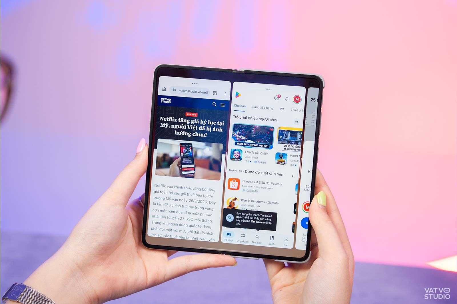 Giao diện ColorOS 16 trên OPPO Find N6 tối ưu hóa trải nghiệm đa nhiệm một cách xuất sắc. Tính năng Open Canvas cho phép người dùng mở cùng lúc 3 ứng dụng xếp cạnh nhau cực kỳ trực quan. Người dùng có thể thoải mái vuốt chạm, mở các cửa sổ pop-up và thay đổi kích thước tùy ý mà không gặp độ trễ.