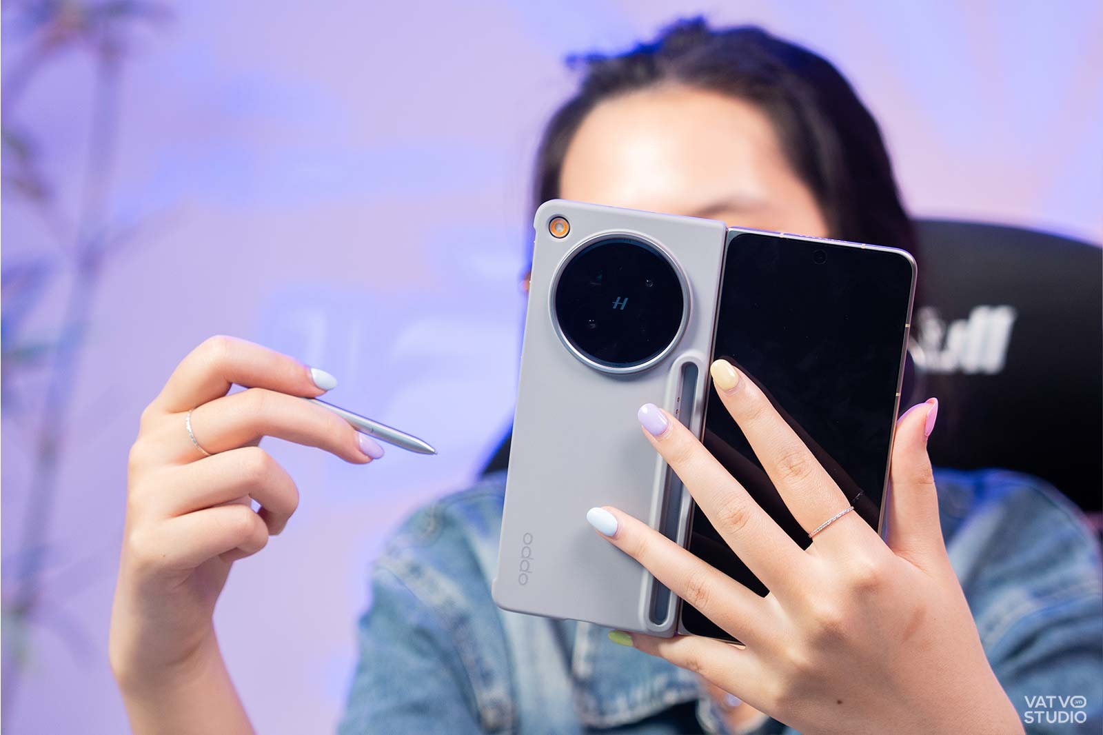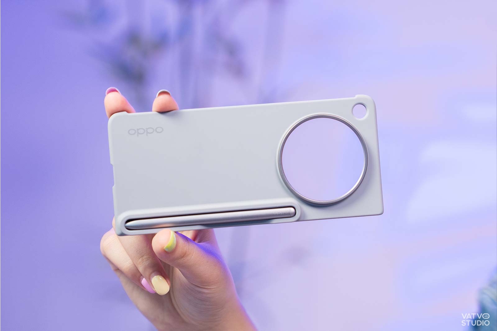Chiếc bút này sẽ được tặng sẵn bên cạnh ốp lưng, nếu người dùng mua OPPO Find N6 trong thời gian mở bán. Điểm đáng khen là chiếc bút hoạt động trơn tru trên cả hai màn hình của thiết bị. Phụ kiện đi kèm một chiếc ốp lưng có khe cắm chuyên dụng vô cùng tiện lợi. Dù ốp lưng khiến diện mạo OPPO Find N6 cồng kềnh hơn, nó lại tích hợp tính năng sạc không dây lấy pin từ điện thoại để nạp trực tiếp cho bút.