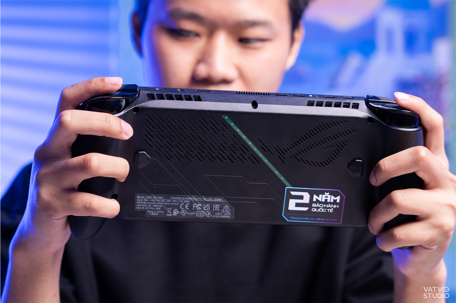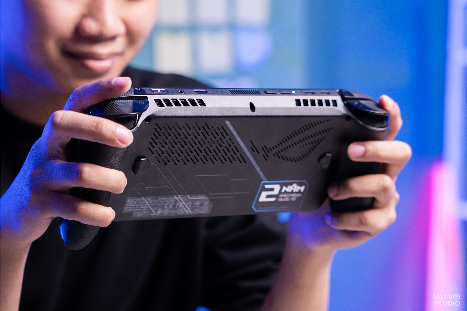 Cảm giác cầm trên tay chiếc máy này “đã” hơn rất nhiều so với các thế hệ ROG Ally trước đây. Nó mang lại sự quen thuộc, ôm tay tương tự như khi chúng ta sử dụng một chiếc tay cầm Xbox tiêu chuẩn. Đây là một bước tiến lớn nếu so với thiết kế có phần nằm ngang, thiếu sự công thái học của phiên bản ROG Ally đời đầu.