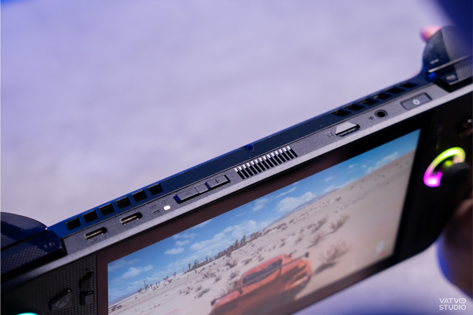 Về nhiệt độ, máy kiểm soát nhiệt khá tốt ở các khu vực quan trọng. Điểm cộng lớn nhất là phần tay cầm hoàn toàn mát mẻ, không hề bị ảnh hưởng bởi nhiệt lượng tỏa ra từ linh kiện, giúp tay không bị ra mồ hôi hay khó chịu khi chơi lâu. Mình đã trải nghiệm chơi Forza Horizon 5 trong gần 2 giờ đồng hồ, và xuyên suốt quá trình đó, hai grip không nóng lên nhiều. Khu vực màn hình có ấm nhưng cũng không ảnh hưởng quá nhiều, và vẫn có thể thao tác cảm ứng một cách dễ dàng.