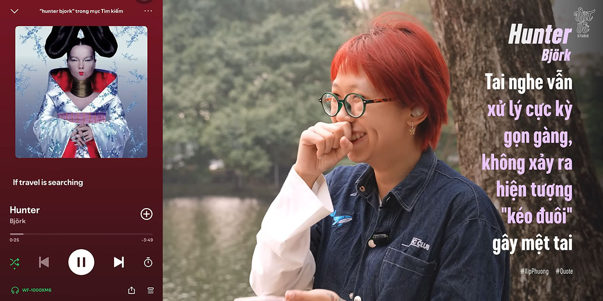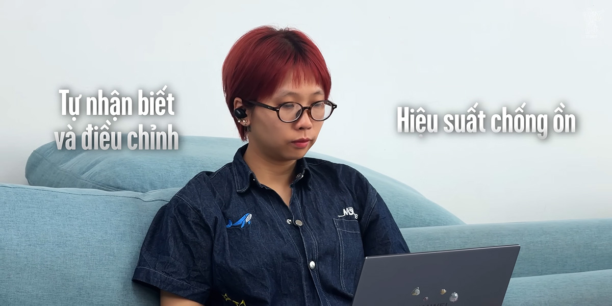 Đối với dải âm trung như tiếng người nói chuyện thì hiệu quả có phần giảm nhẹ, nhưng tính năng khử ồn thích ứng lại hoạt động thông minh. Khi mình di chuyển từ môi trường ồn ào xuống khu vực yên tĩnh hơn, tai nghe tự động nhận biết và điều chỉnh mức độ chống ồn từ 80% xuống khoảng 40%, giúp mang lại cảm giác nghe tự nhiên, không bị ù tai mà vẫn giữ được không gian tĩnh lặng.