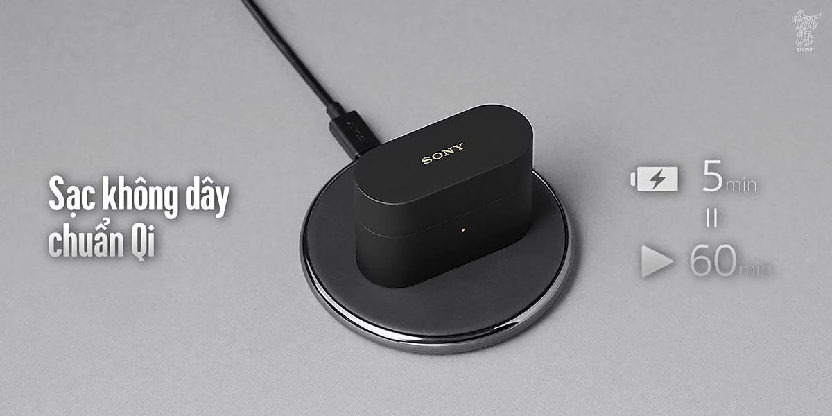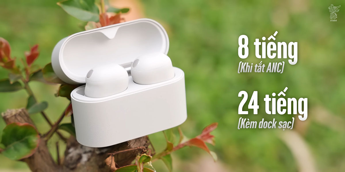 Thời lượng pin của phiên bản này không thay đổi so với thế hệ trước. WF-1000XM6 vẫn cung cấp cho người dùng khoảng 8 giờ nghe nhạc liên tục khi tắt chống ồn và lên đến 24 giờ khi dùng kèm hộp sạc. Bên cạnh đó, tai nghe cũng trang bị sạc không dây chuẩn Qi và tính năng sạc nhanh 5 phút cho 1 giờ sử dụng.