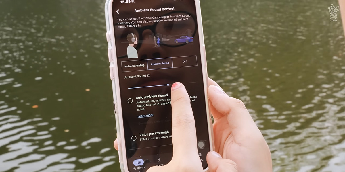 Chế độ xuyên âm năm nay thu lại âm thanh môi trường qua 8 micro khá chân thực và gần như không có sự khác biệt nhiều so với khi tháo tai nghe. Trong ứng dụng kết nối, bạn có thể tùy chỉnh hai mức độ xuyên âm và chọn chế độ tập trung vào giọng nói. Các tiện ích thông minh như tính năng nói để trò chuyện, tự động giảm âm lượng sau 5 giây khi phát hiện giọng nói hay thao tác chạm điều khiển đều hoạt động trơn tru.
