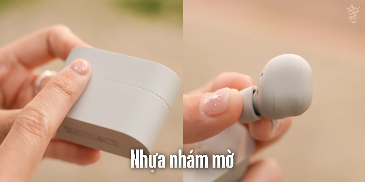 Bù lại, lớp nhựa nhám mờ phủ toàn bộ từ hộp sạc đến phần tai nghe giúp hạn chế bám vân tay hiệu quả hơn so với nhựa bóng trên thế hệ cũ. Điều này giúp tăng độ bám và tạo nên vẻ ngoài thanh lịch.