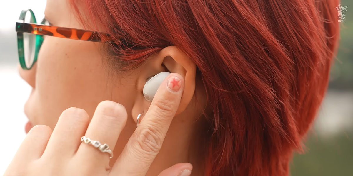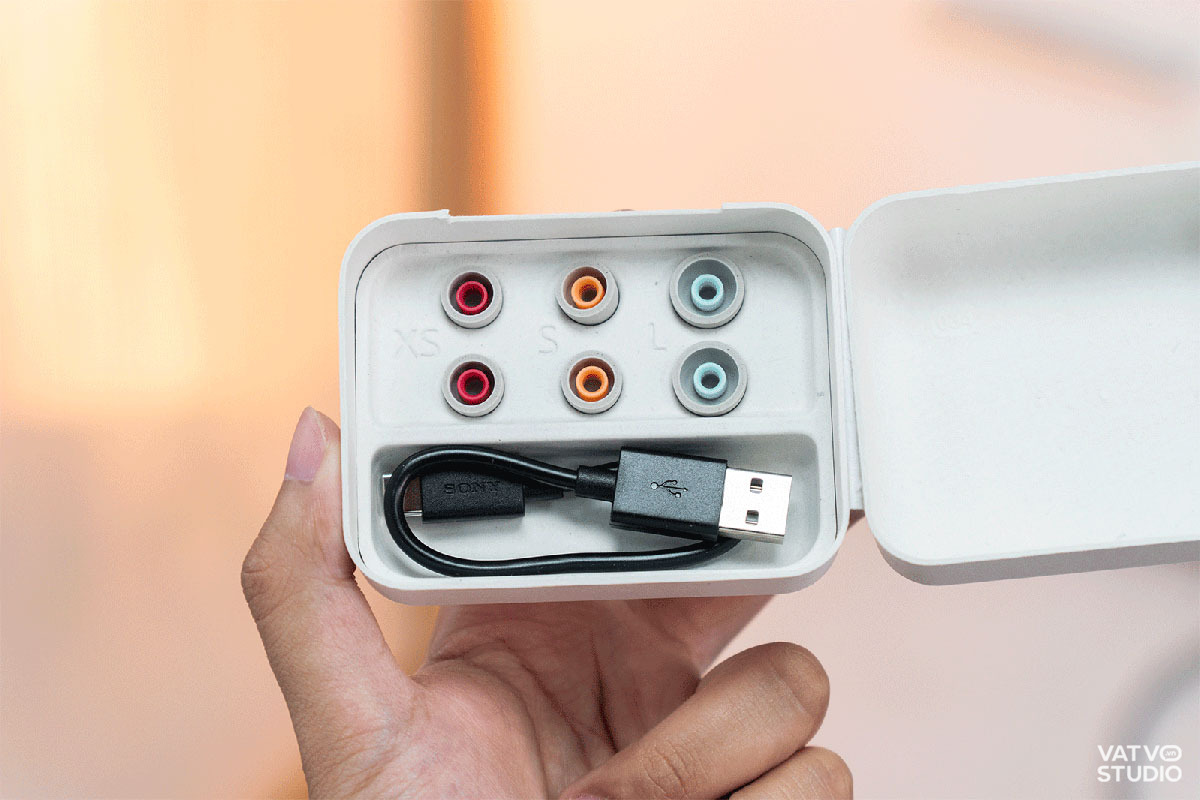 Về cảm giác đeo, việc bổ sung thêm micro khiến phần thân tai nghe trở nên khá dày. Khi đeo lên tai trông có phần lộ và cồng kềnh. Do ống tai của mình nhỏ nên tai nghe dễ bị lỏng hoặc gây cấn khi nằm nghiêng. Bù lại, bộ đệm tai bọt biển đi kèm có bốn kích cỡ từ XS đến L với độ đàn hồi tốt. Đệm tai ôm khít giúp giảm áp lực và hỗ trợ chống ồn. Tuy nhiên, điểm hạn chế đáng lưu ý của chất liệu bọt biển là khó vệ sinh, dễ bám bẩn và có thể bị ngả màu theo thời gian sử dụng.