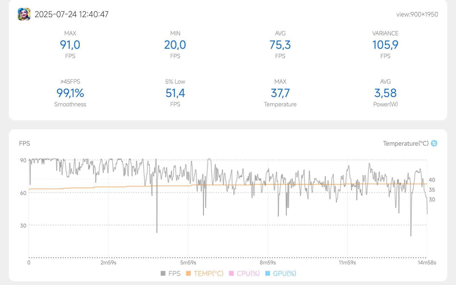 Biểu đồ FPS trên Xiaomi Mi 10 khi chơi LMHT: Tốc Chiến (Trung bình + 90FPS)