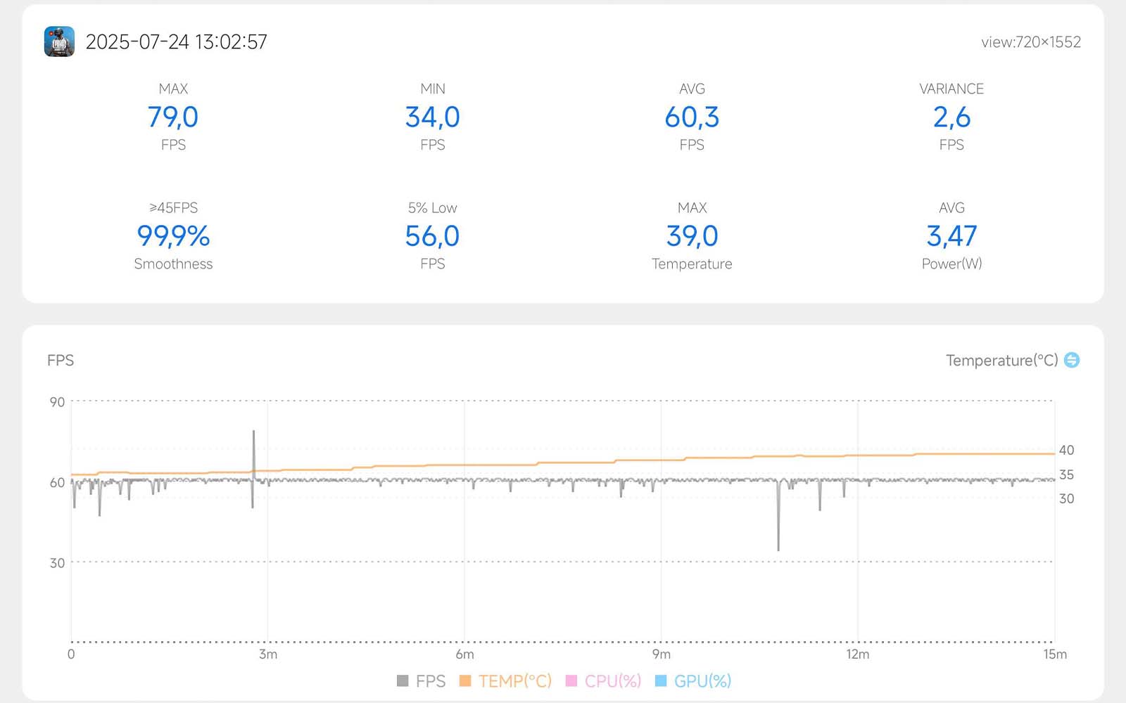 Chuyển sang PUBG Mobile, máy có thể cài đặt ở mức Mượt + 90 FPS, nhưng trong thực tế chỉ đạt tối đa 60 FPS. Bù lại, trải nghiệm cực kỳ ổn định, biểu đồ FPS gần như là một đường thẳng. Nhìn chung, nếu chỉ có nhu cầu chơi các tựa game từ nhẹ đến trung bình, Xiaomi Mi 10 với Snapdragon 865 vẫn đảm bảo được hiệu năng tốt, đủ dùng trong thời gian tới.