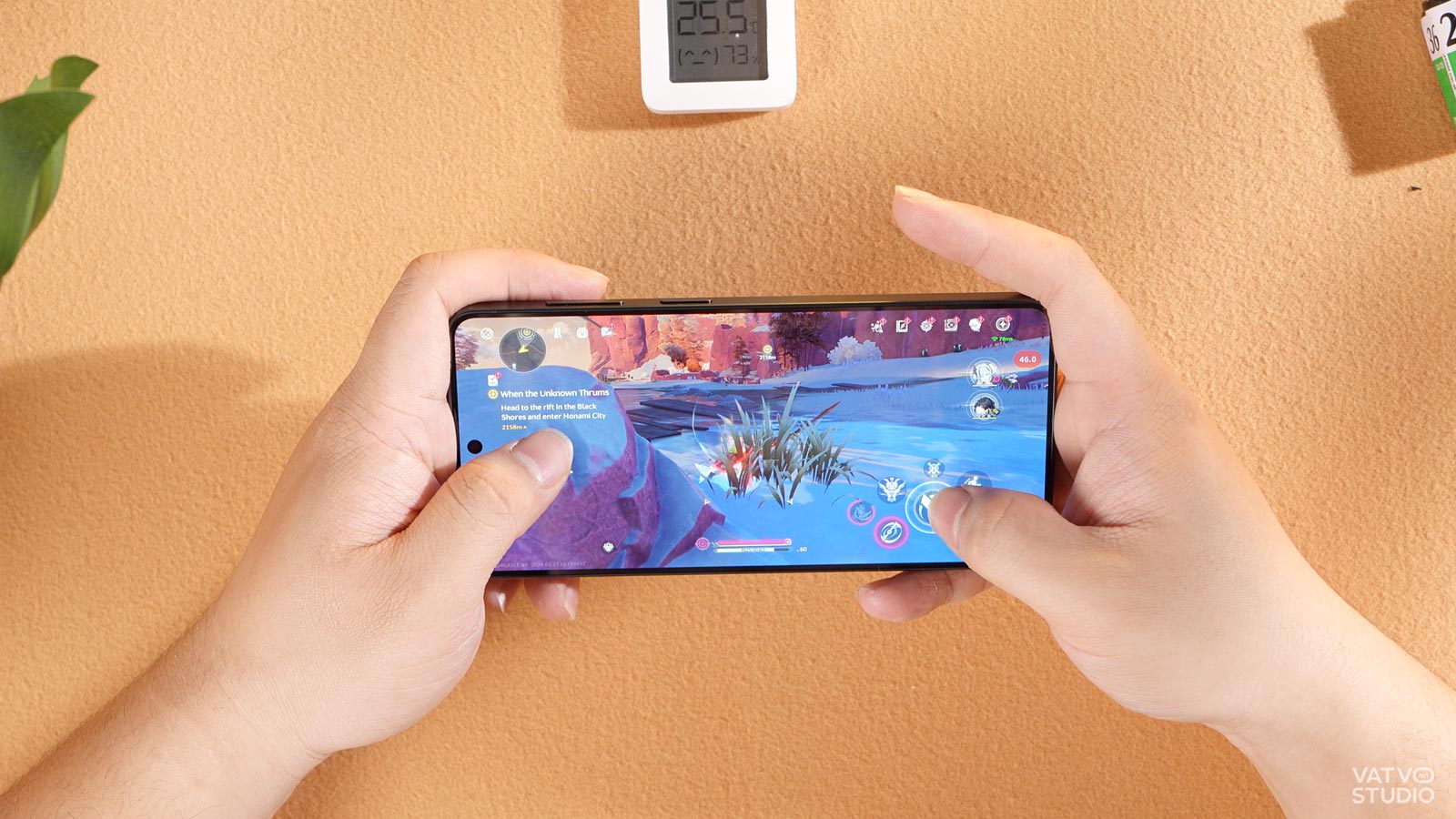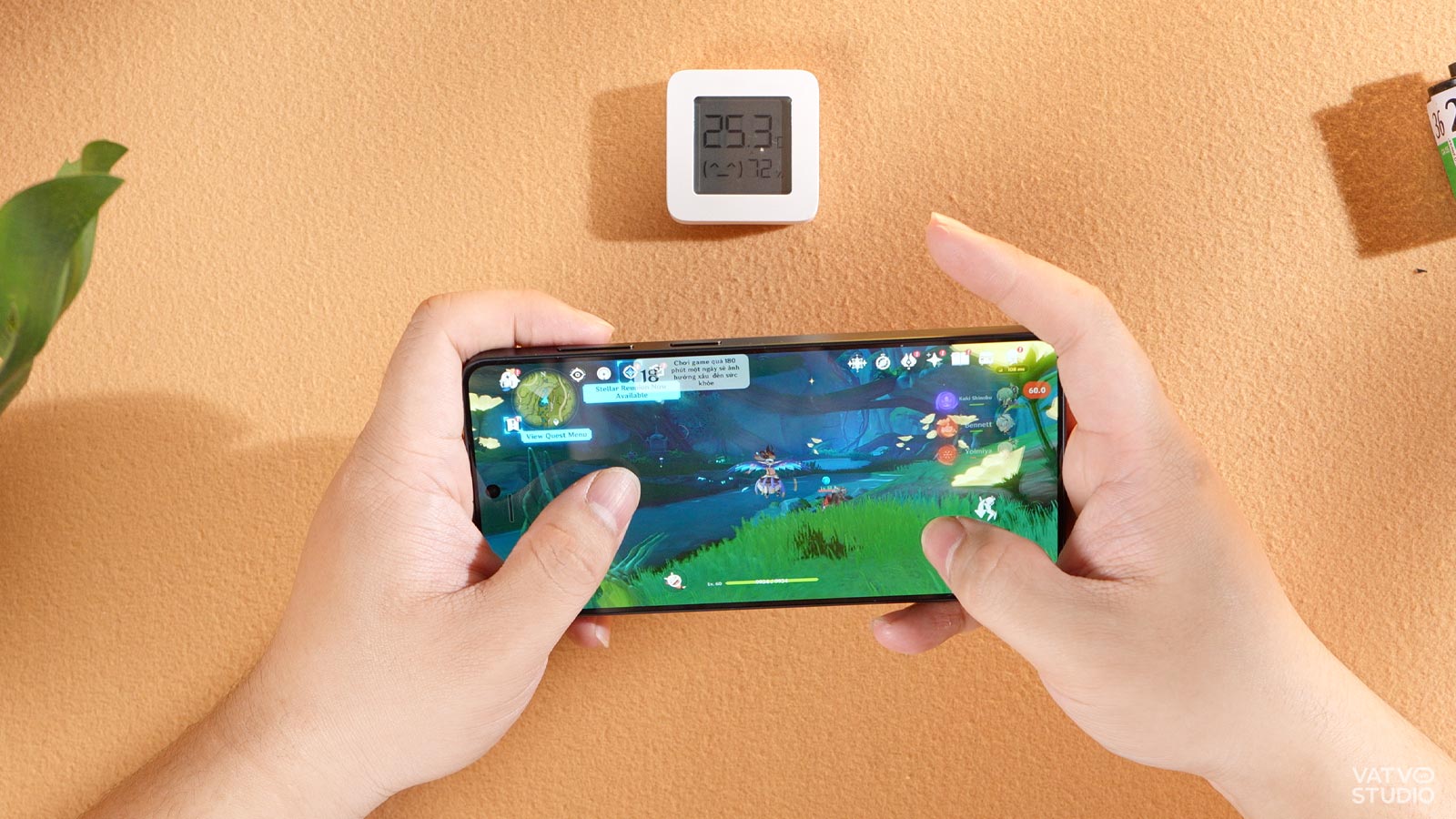 Tuy nhiên, một điểm trừ trên chiếc điện thoại này nằm ở thiết kế công thái học khi chơi game. Viền máy dù đã được bo tròn hơn so với thế hệ tiền nhiệm, nhưng khi cầm ngang, ngón tay áp út vẫn dễ bị chạm vào phần gờ camera. Quá trình vuốt chạm liên tục khiến ngón tay bị cọ xát, tạo ra cảm giác cấn và khó chịu. Đối với những người dùng có thói quen không sử dụng ốp lưng, đây sẽ là một rào cản nhỏ trong trải nghiệm thực tế.