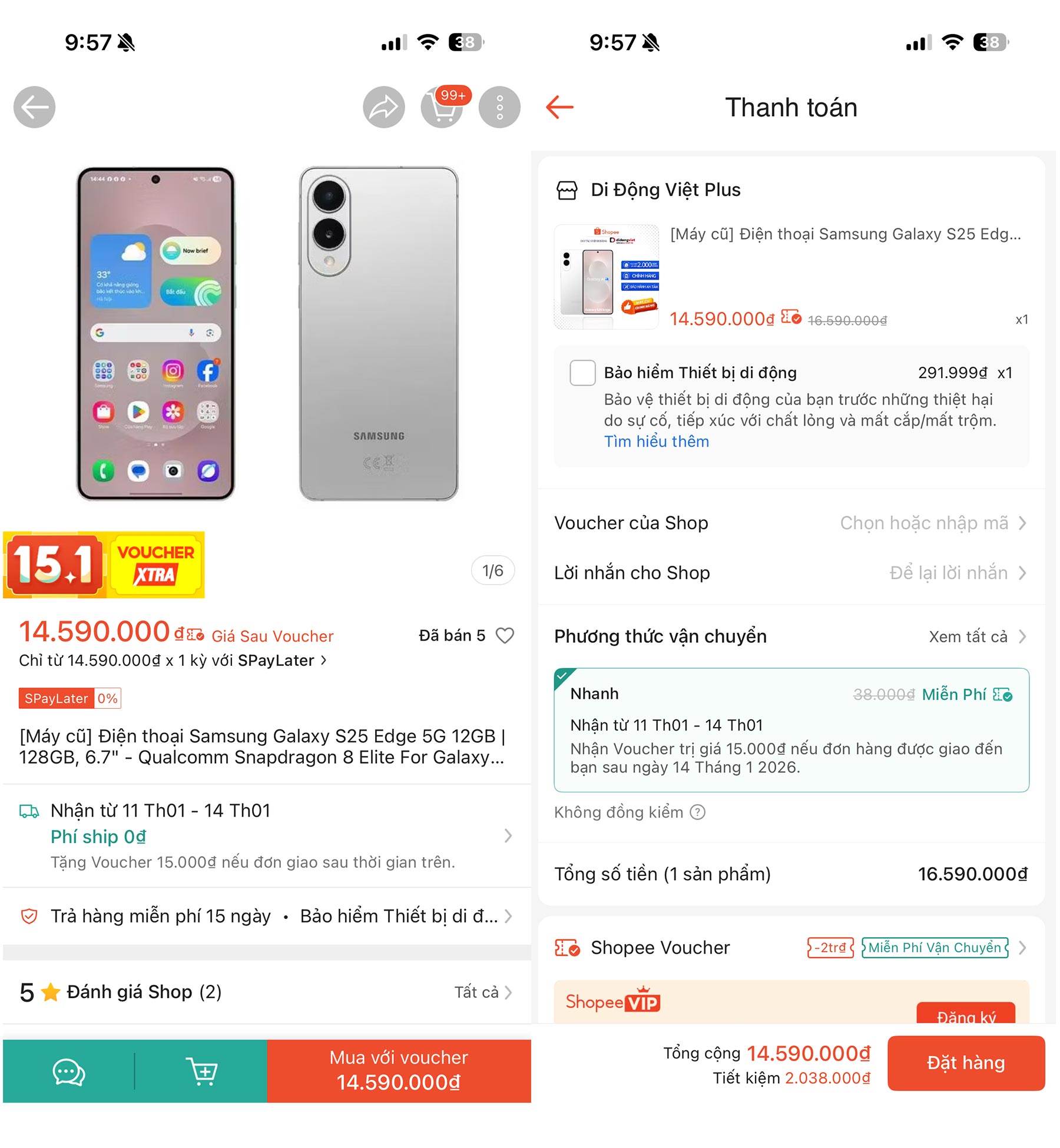 Tuy nhiên, yếu tố đáng nói nằm ở thị trường máy cũ. Cụ thể, trong thời gian gần đây, một số gian hàng trên Shopee đã triển khai chương trình bán máy cũ với mức giá rất rẻ, chỉ khoảng 14 – 14,5 triệu đồng cho một chiếc Galaxy S25 Edge chính hãng. Thậm chí, nếu mua trong các dịp ngày đôi với mã giảm giá sâu hơn, mức giá chỉ còn khoảng 13 – 13,5 triệu đồng.